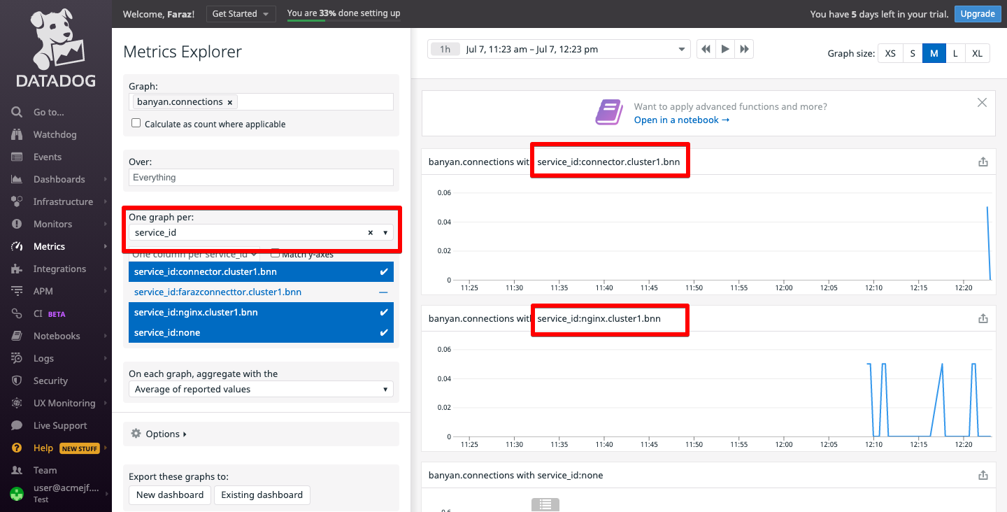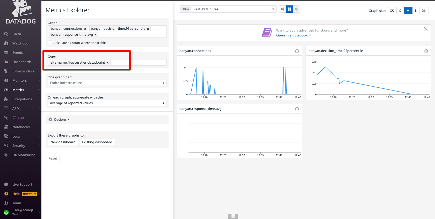 Metrics sent to Datadog contain tags that allow filtering at per Service or per Access Tier level. In order to filter metrics at an Access Tier level, navigate to the Metrics Explorer and filter on site_name={Access Tier}.