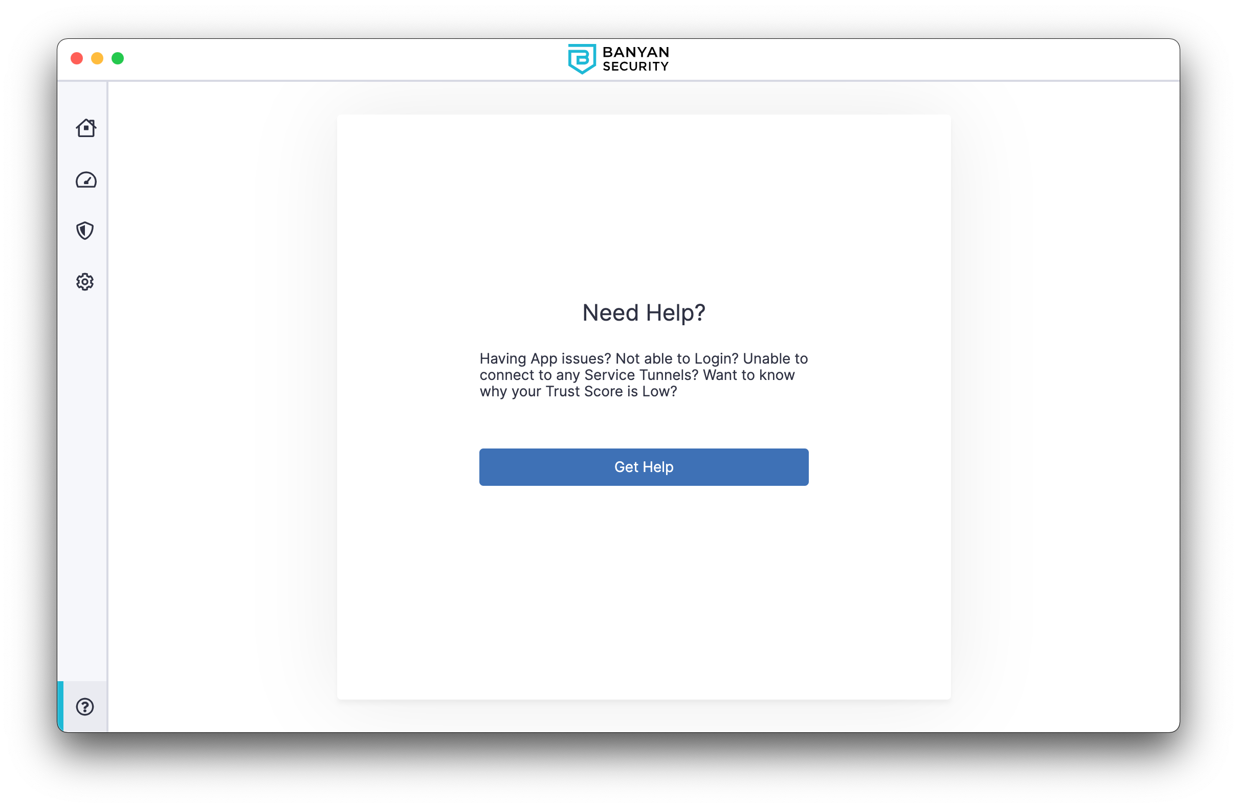 In the Help tab, end users can select Get Help to access admin-defined help content and support links to self-remediate technical issues.