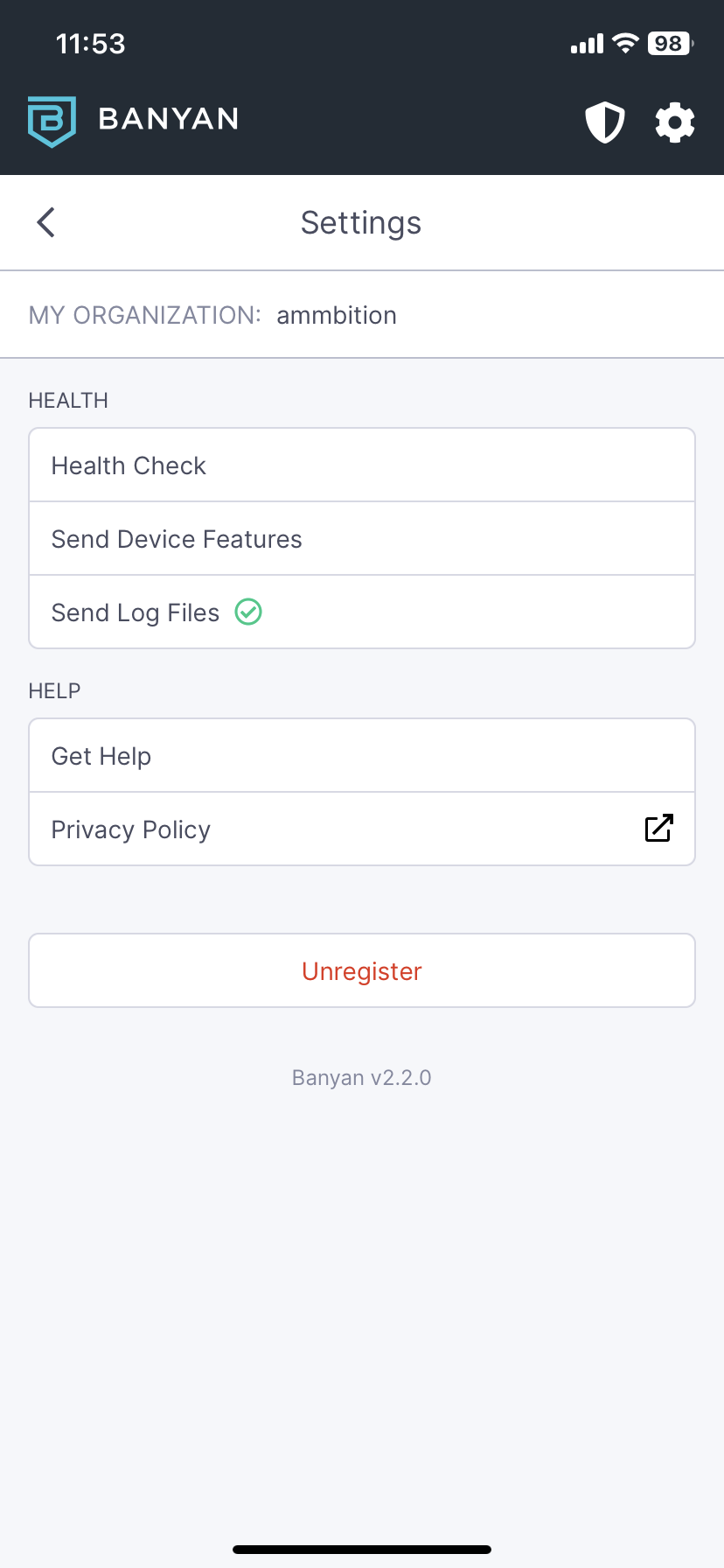 1. Navigate from Settings > Send Log Files. The green check indicates that app log files have successfully sent to SonicWall support.