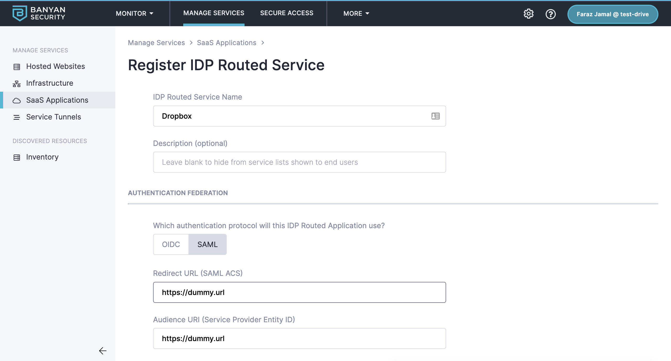 1.3 In the IDP Routed Service Name field, enter your service name (e.g., the name of your app).