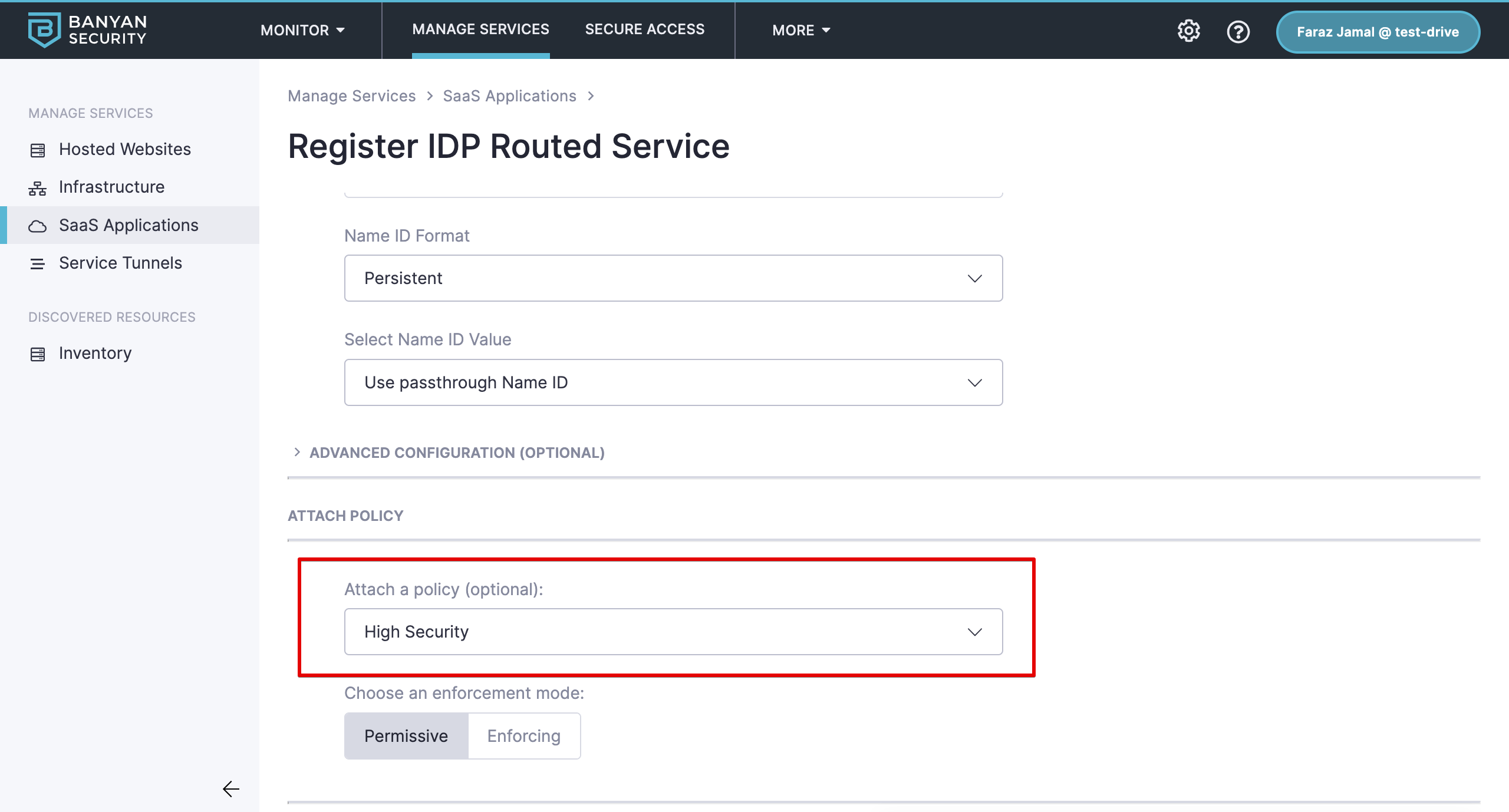 1.6 Attach a Policy of your choice (e.g., High Security).