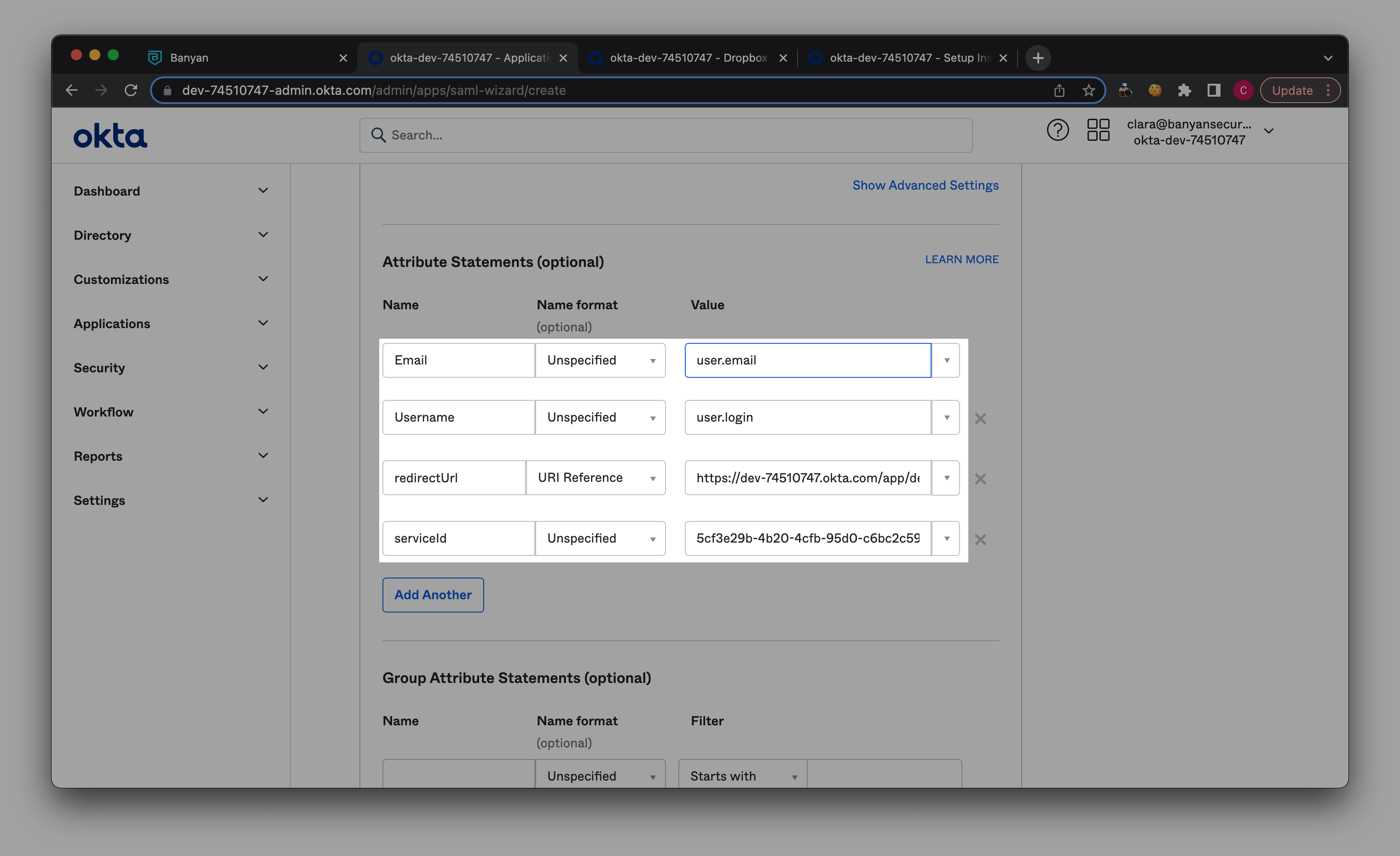 - Configure Okta for CSE Service Access to create a directory of users for accessing Banyan services