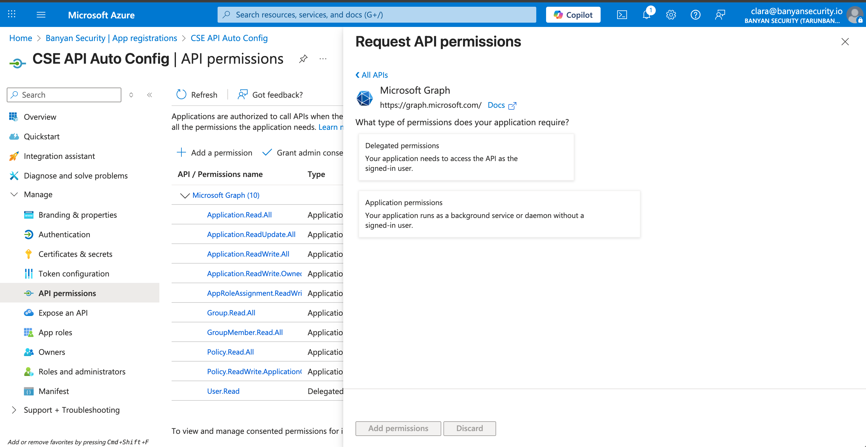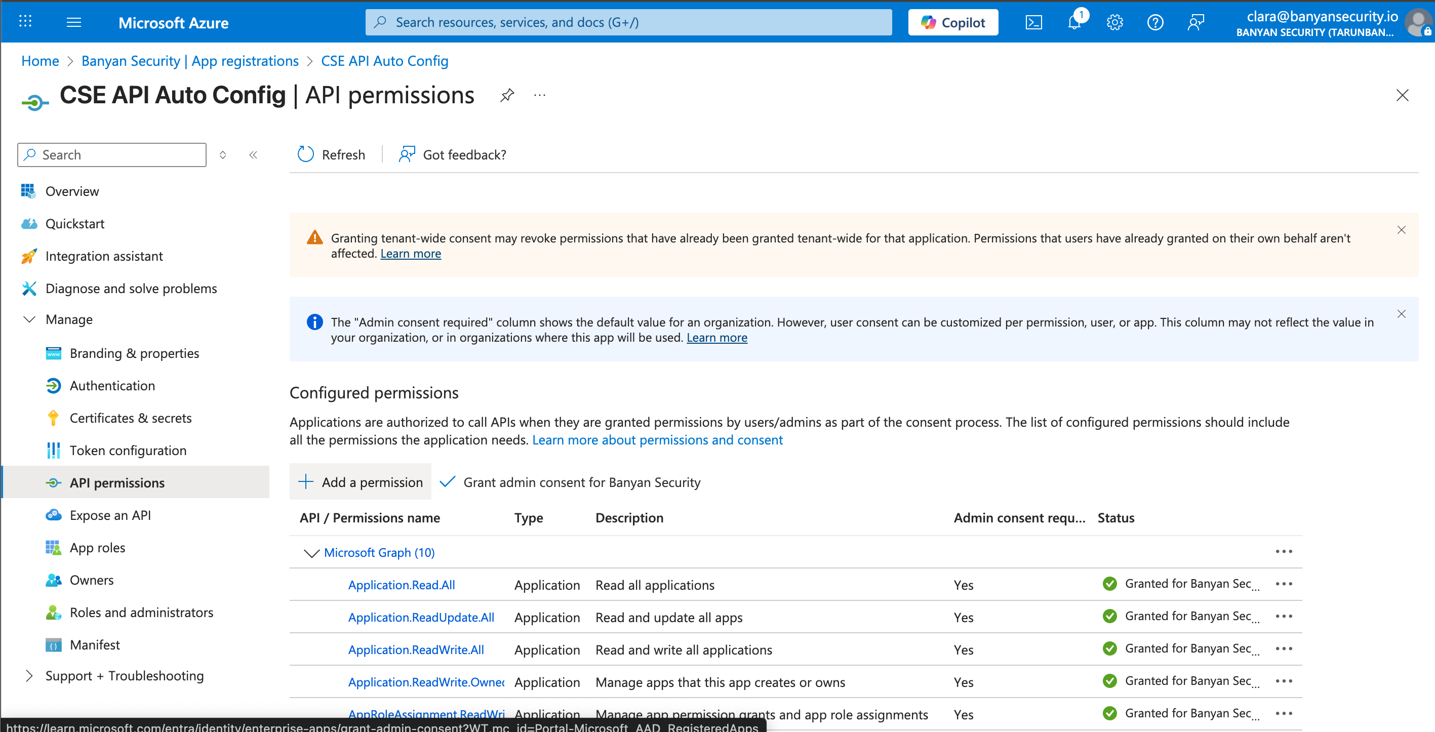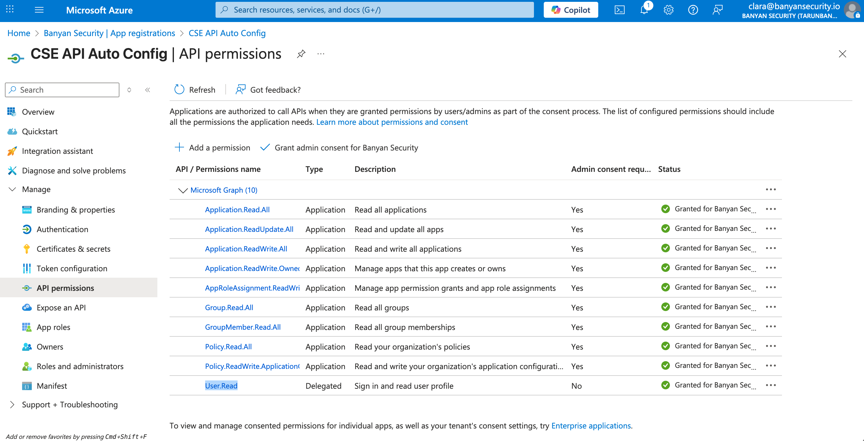 Application.Read.AllApplication.ReadWrite.AllApplication.ReadUpdate.AllApplication.ReadWrite.OwnedBy(for SCIM)AppRoleAssignment.ReadWrite.AllGroup.Read.AllGroupMember.Read.AllPolicy.Read.AllPolicy.ReadWrite.ApplicationConfigurationUser.Read