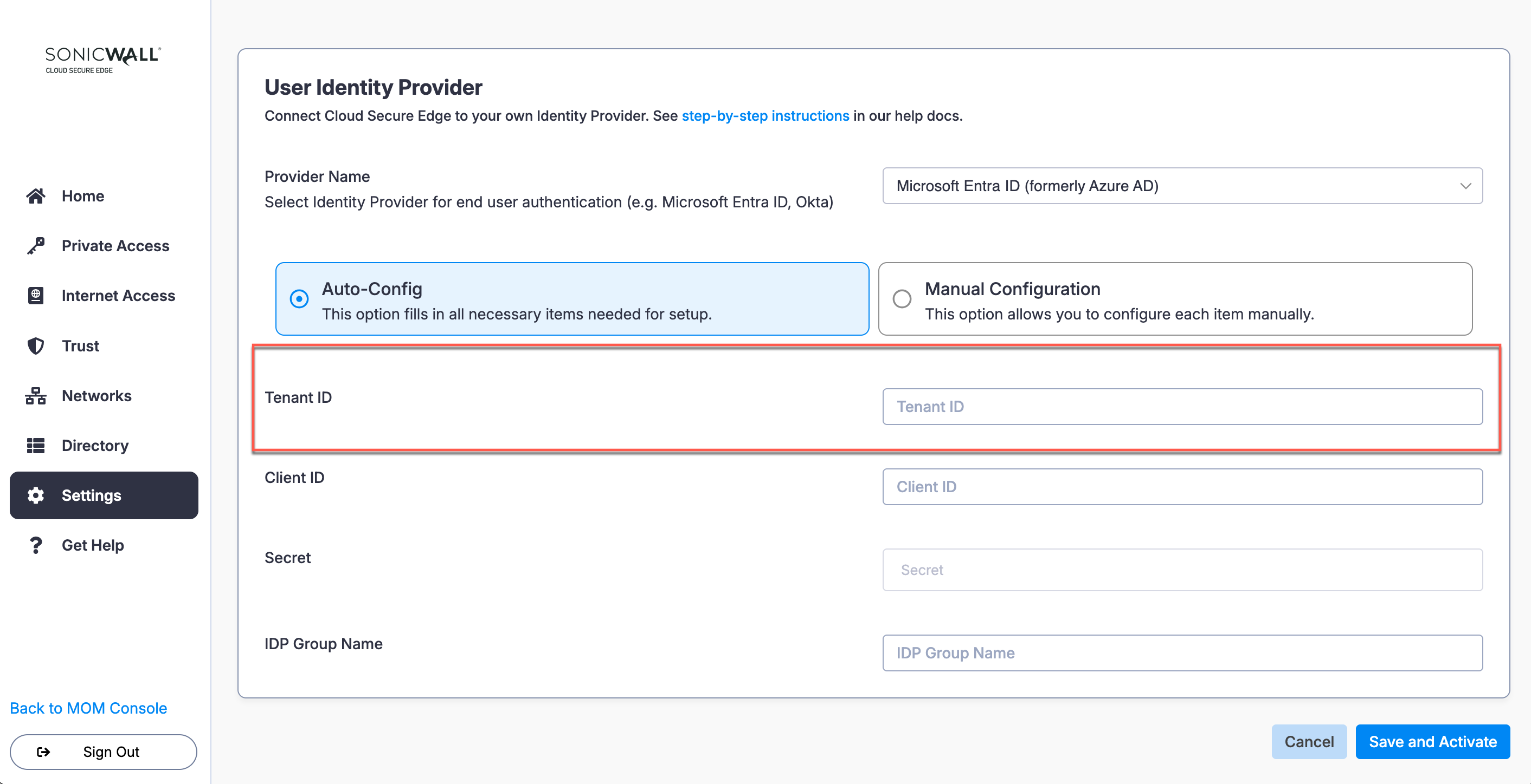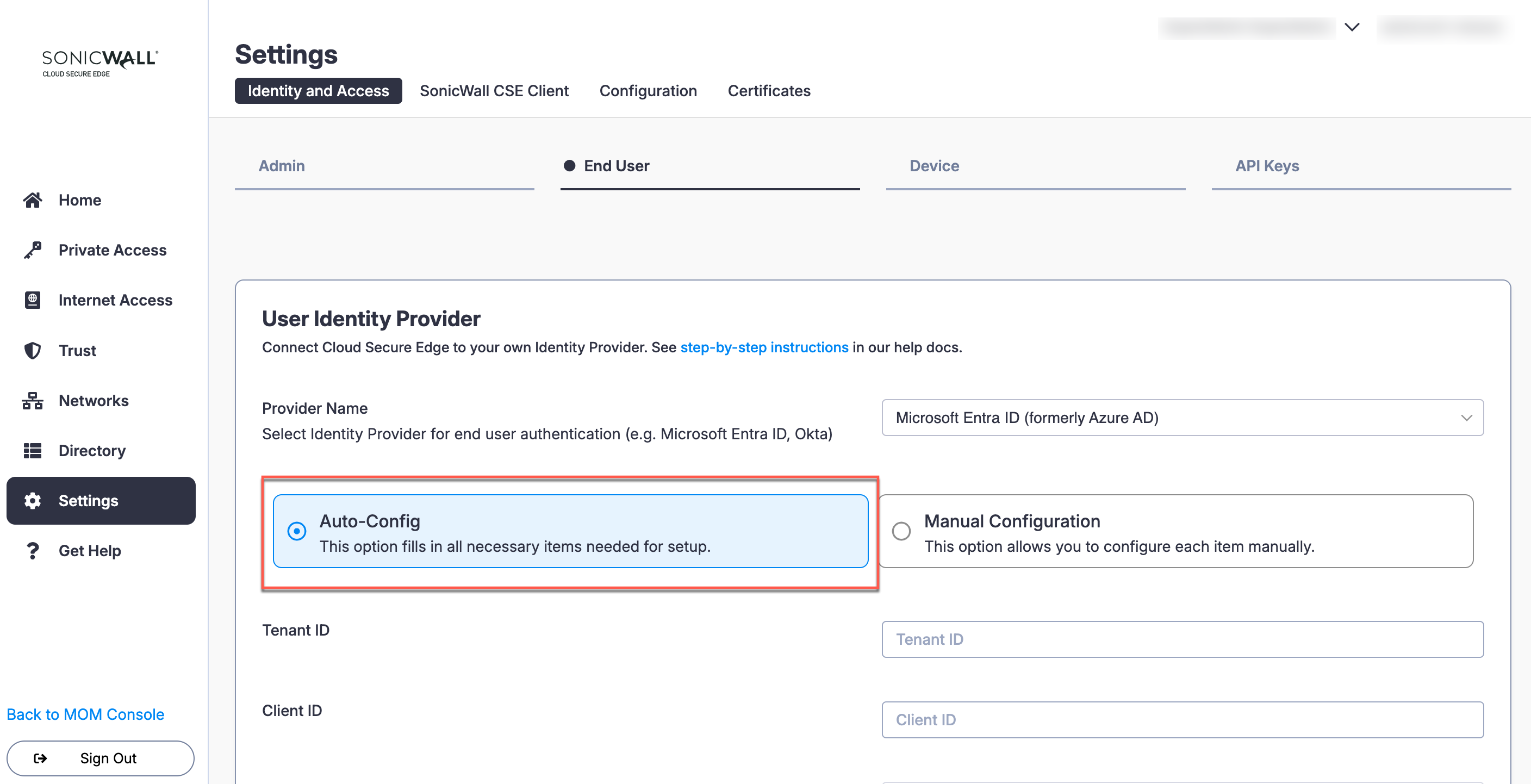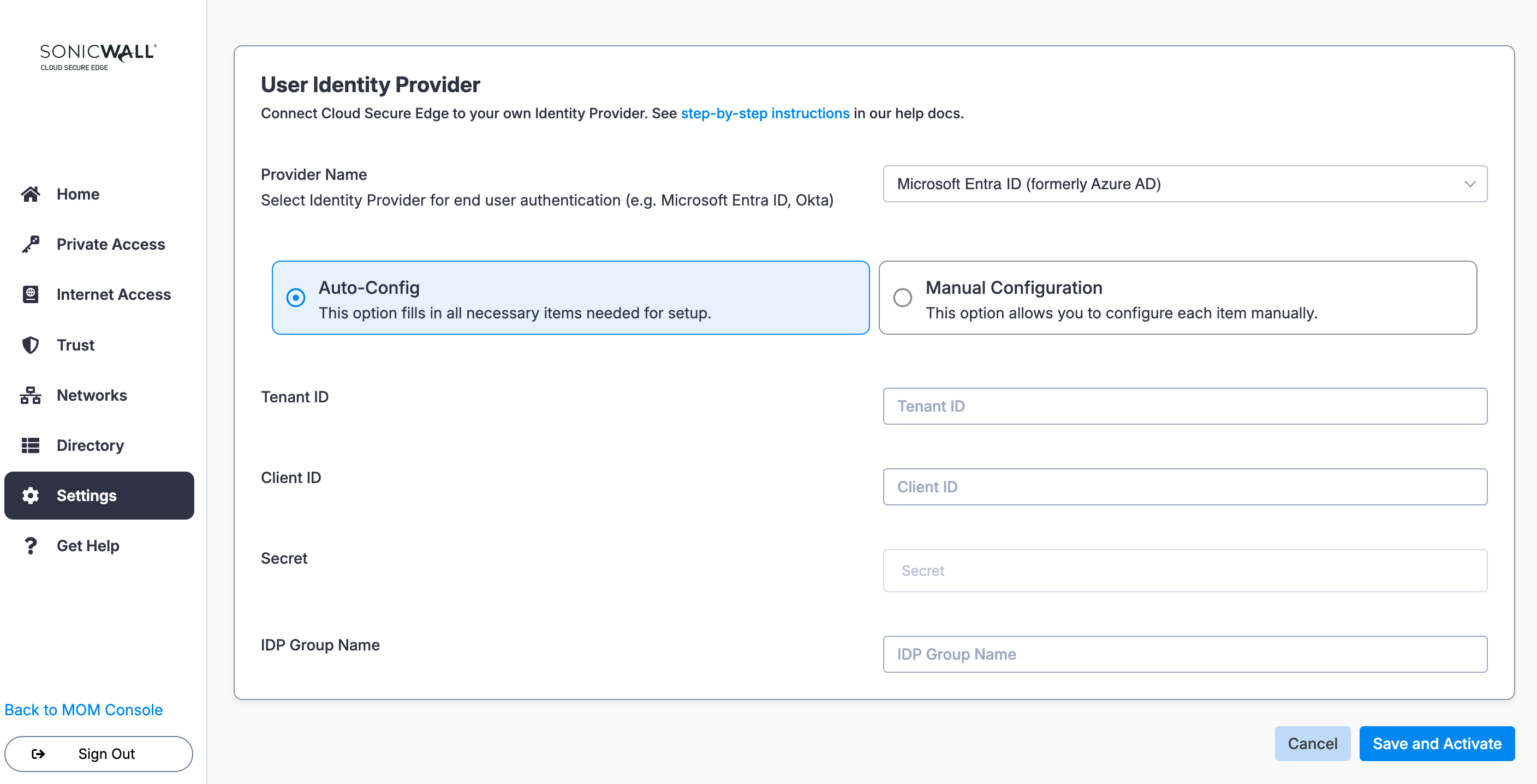 Entra ID is Microsoft’s cloud-based identity and access management service, which authenticates your employees to access protected resources. SonicWall integrates with your organization’s Entra ID SSO to authenticate users that need access to Cloud Secure Edge services.
