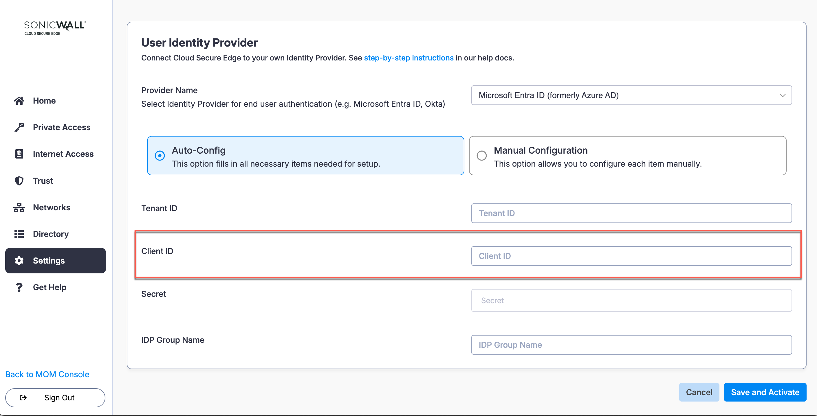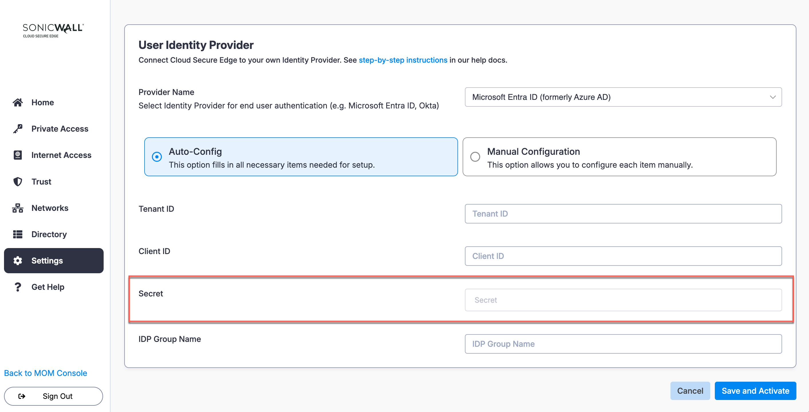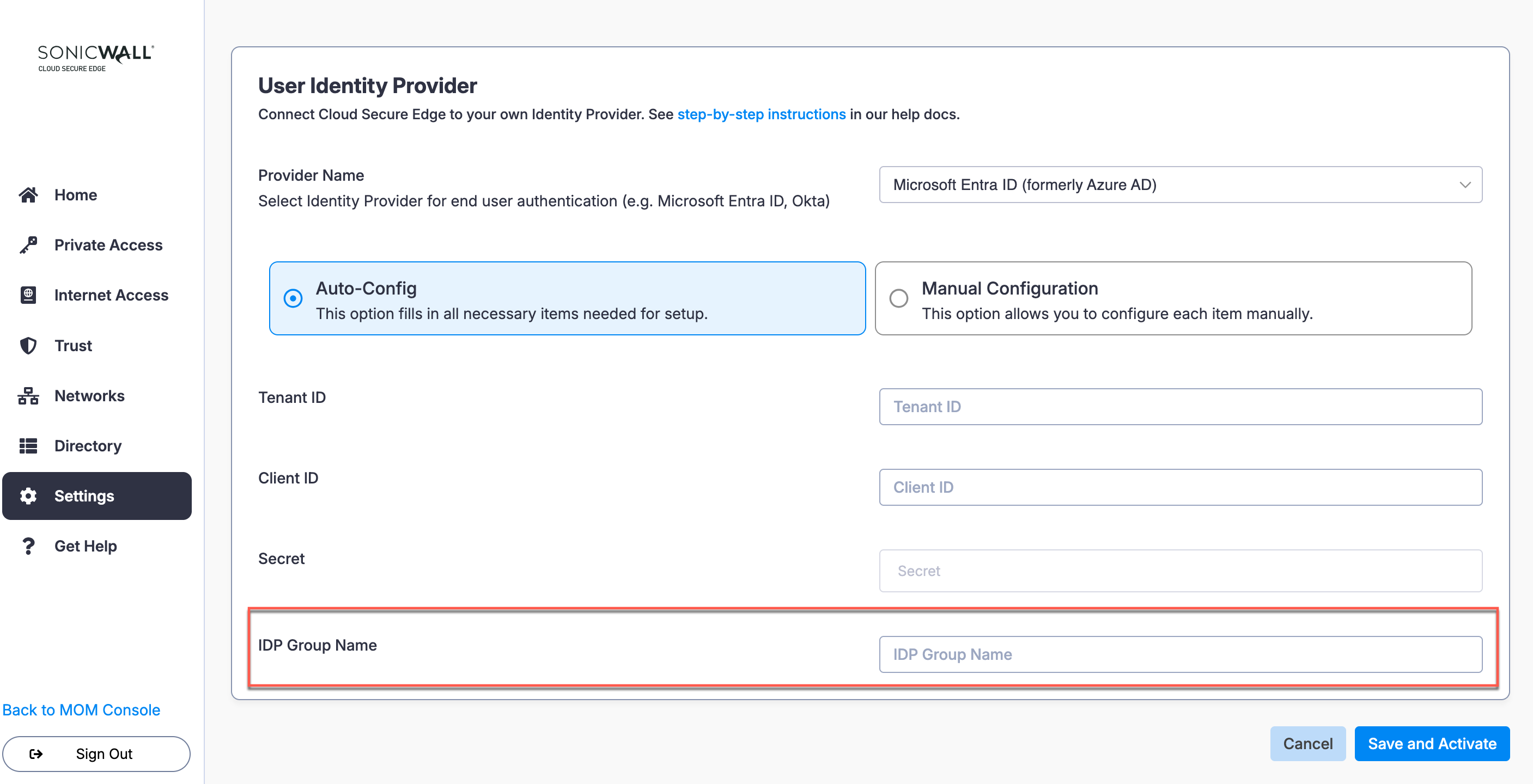 Entra ID is Microsoft’s cloud-based identity and access management service, which authenticates your employees to access protected resources. SonicWall integrates with your organization’s Entra ID SSO to authenticate users that need access to Cloud Secure Edge services.