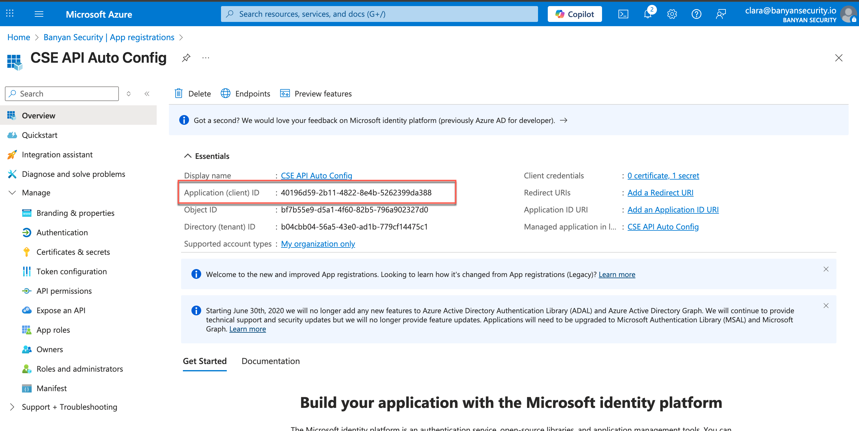 2.7 Copy the Application (client) ID, and paste this value into the Client ID field in CSE.