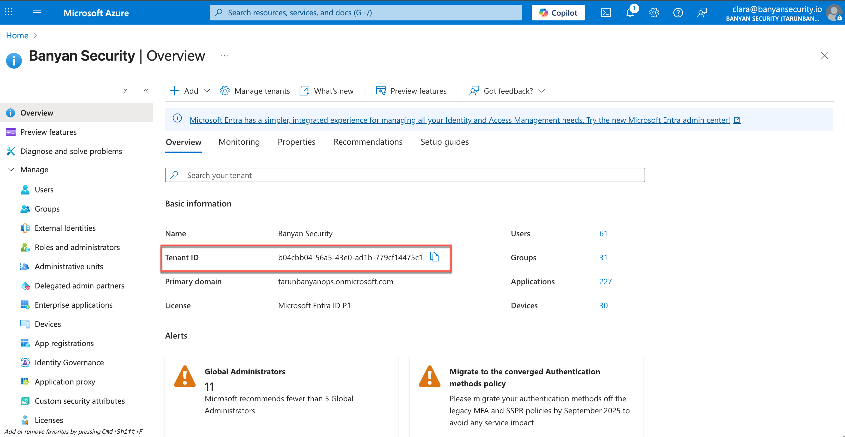 2.1 Navigate from Microsoft Azure Portal > Microsoft Entra ID. Copy the Tenant ID, and paste it into the Tenant ID field in CSE.
