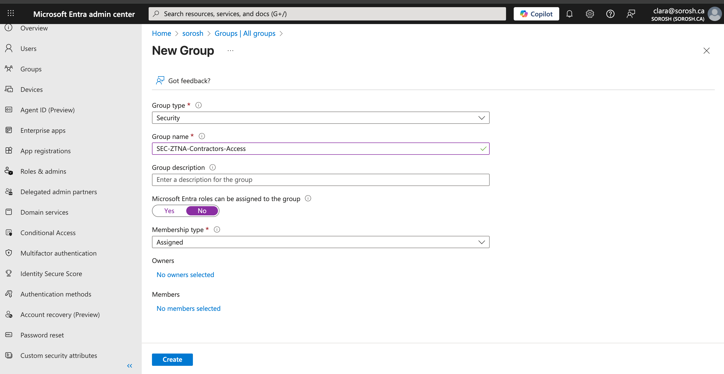 1.4 Enter a Group Name (e.g., SEC-ZTNA-Contractors-Access or M365-ZTNA-Contractors).