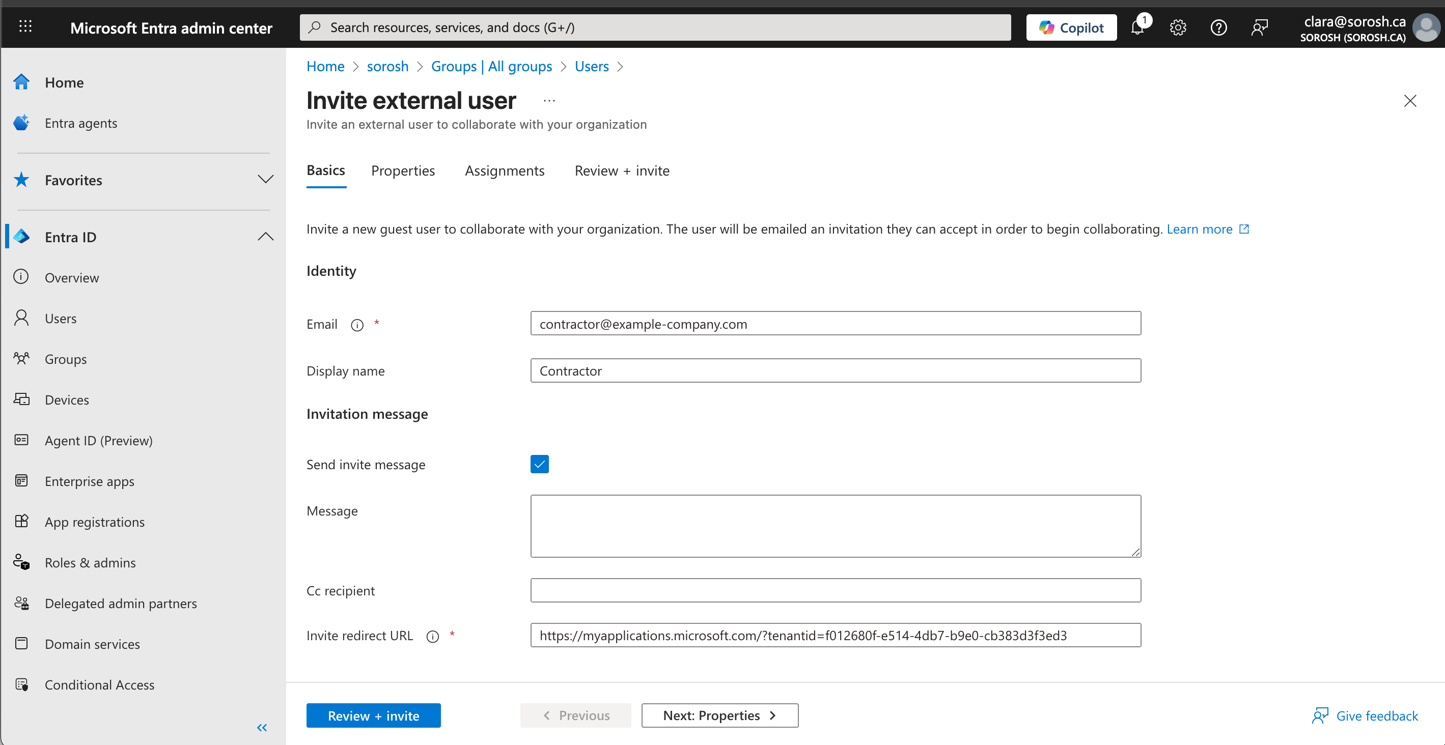 contractor@their-company.com). Entra ID redirects them to their own company’s sign-in page to authenticate. -