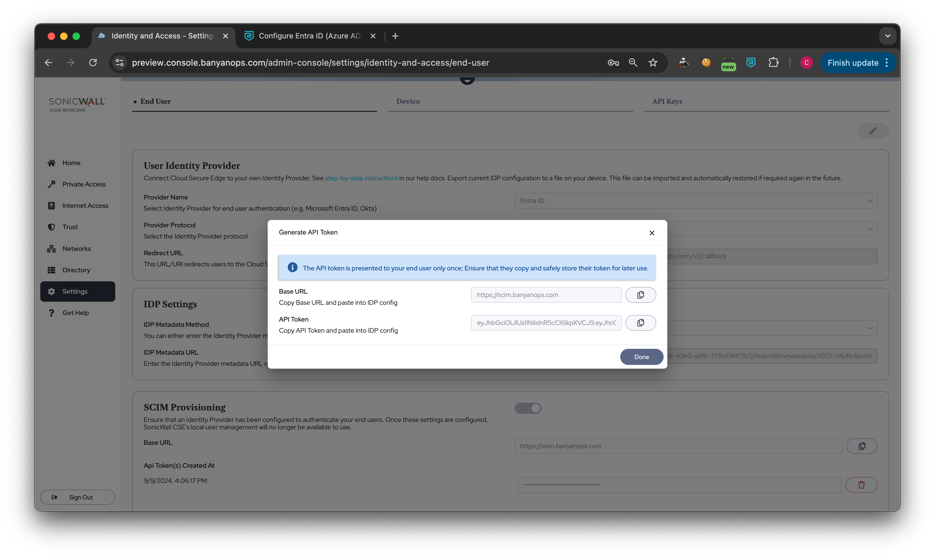 1.2 Under SCIM Provisioning, generate an API token. Copy the token.