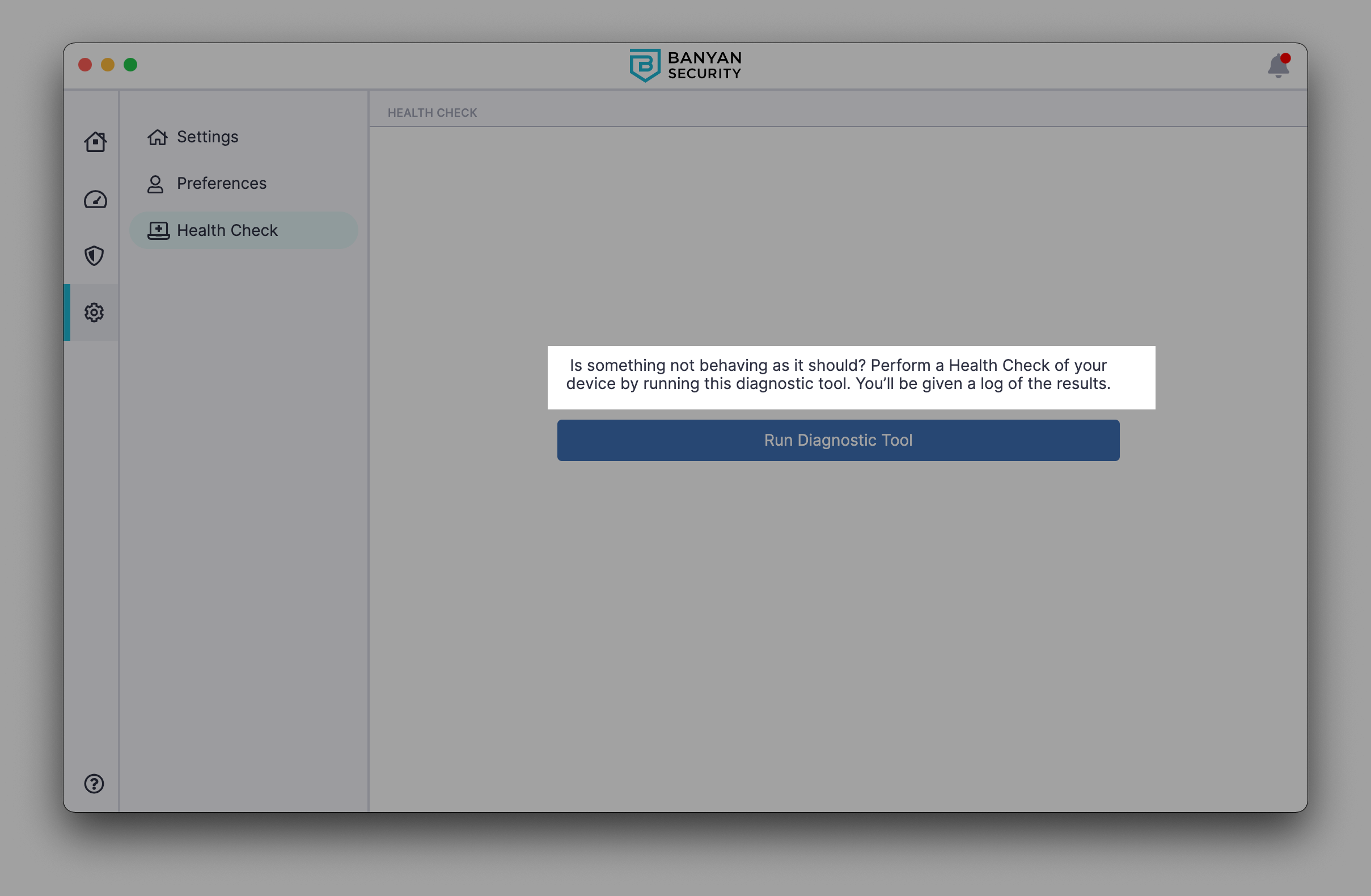 In-app custom messaging appears when end users select the new Help button in the desktop app. If no custom message is set, the Help button sends end users to Health Check.