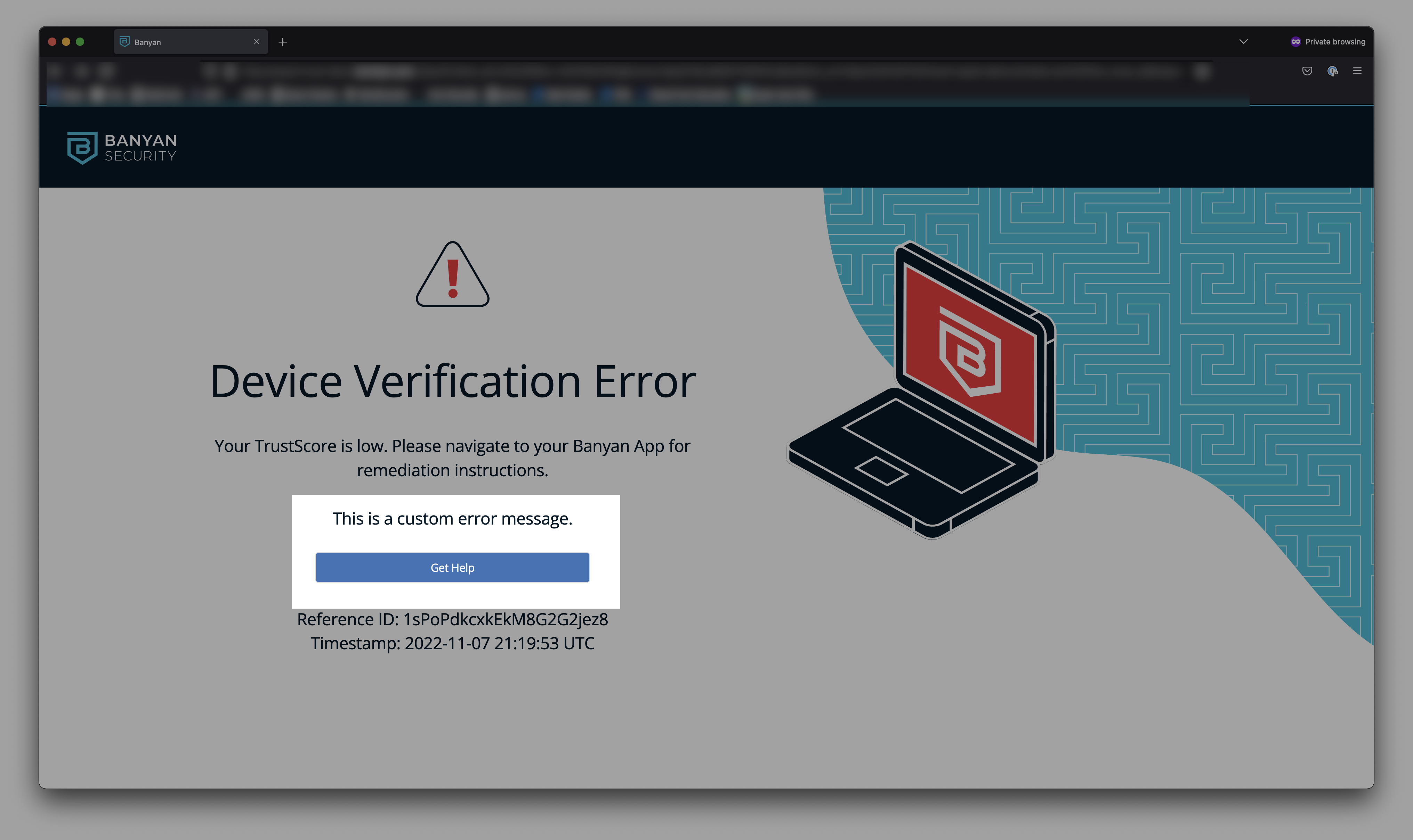 In-browser error messaging, shown below, appears when end users are facing authentication or authorization errors.