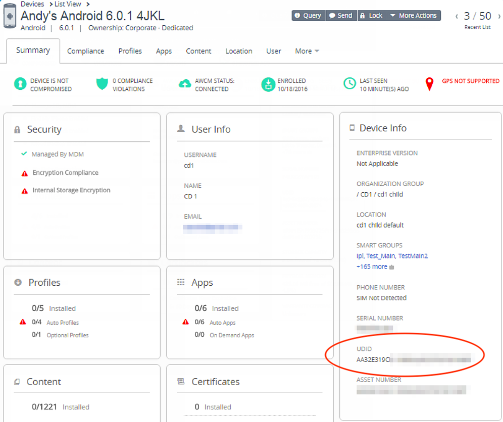mdm_vendor_udidto the device’s specific Workspace ONE UEM UDID to associate the device with its Workspace ONE UEM compliance factors; this is for use in Device Trust Scoring. Check a device’s Workspace ONE UEM UDID by logging into your Workspace ONE UEM Console, locating a specific device, and reviewing the Device Details summary.