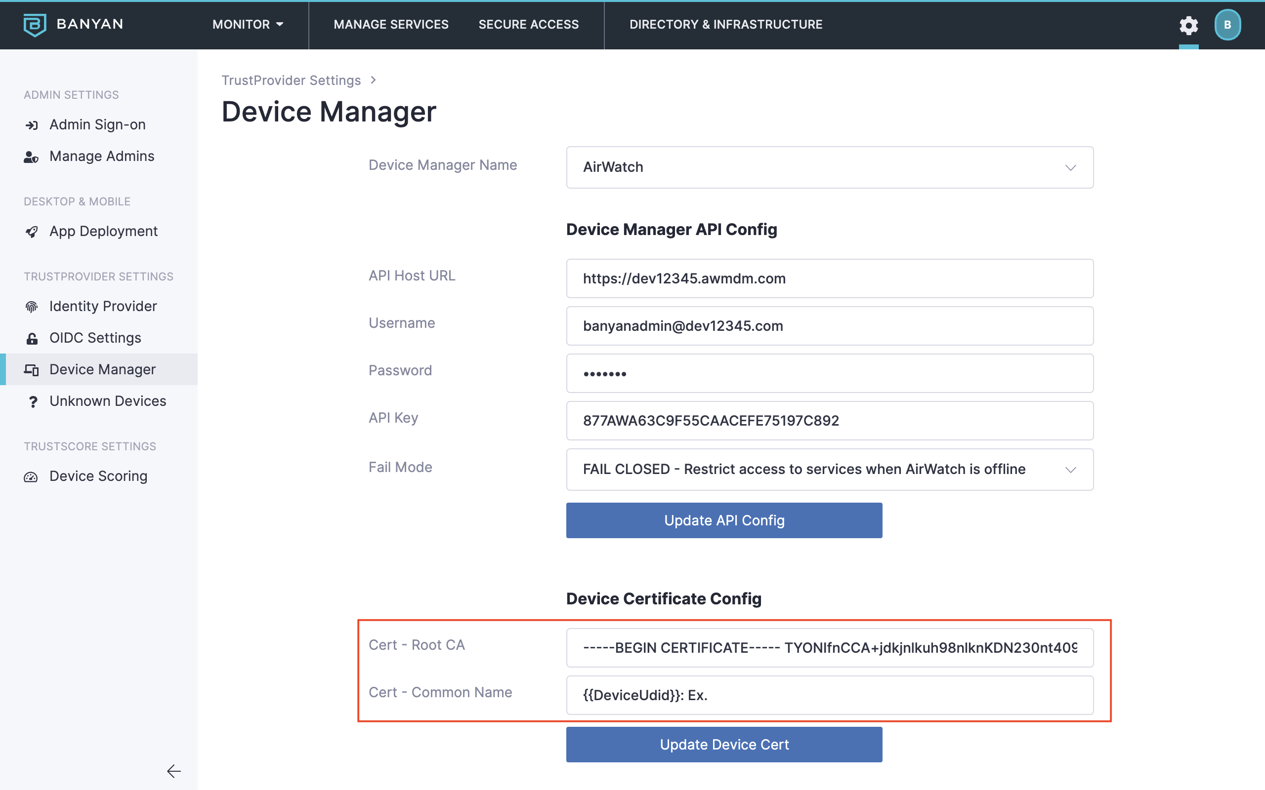 This article covers how to integrate with Workspace ONE UEM for Device Identity (using pre-installed certificates) and for Enhanced Trust Scoring via APIs. For detailed instructions on how to distribute the desktop app to your entire fleet of managed devices, visit our article on distributing the desktop app.
