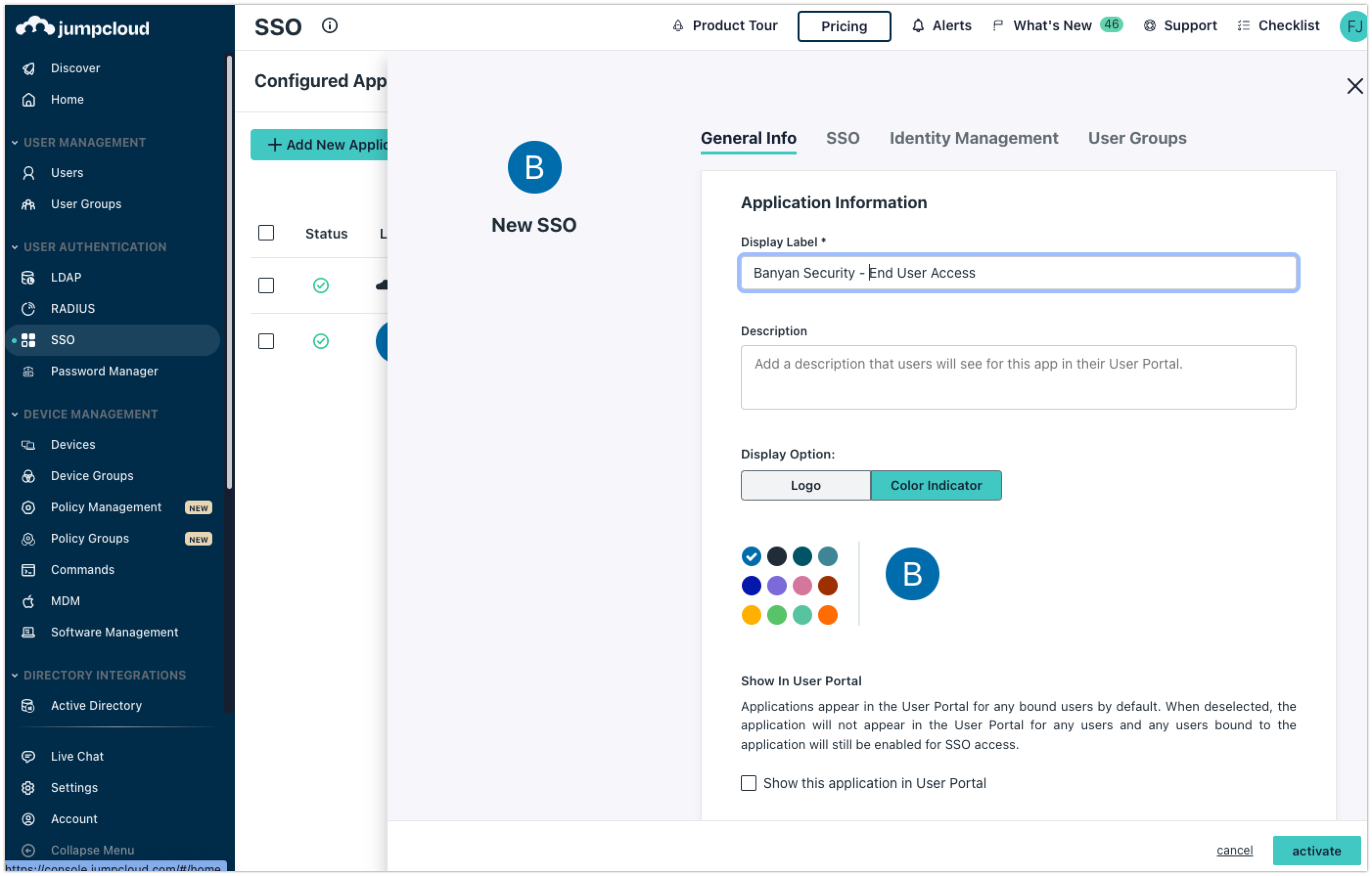 Configure JumpCloud to manage your directory of users in SonicWall Cloud Secure Edge