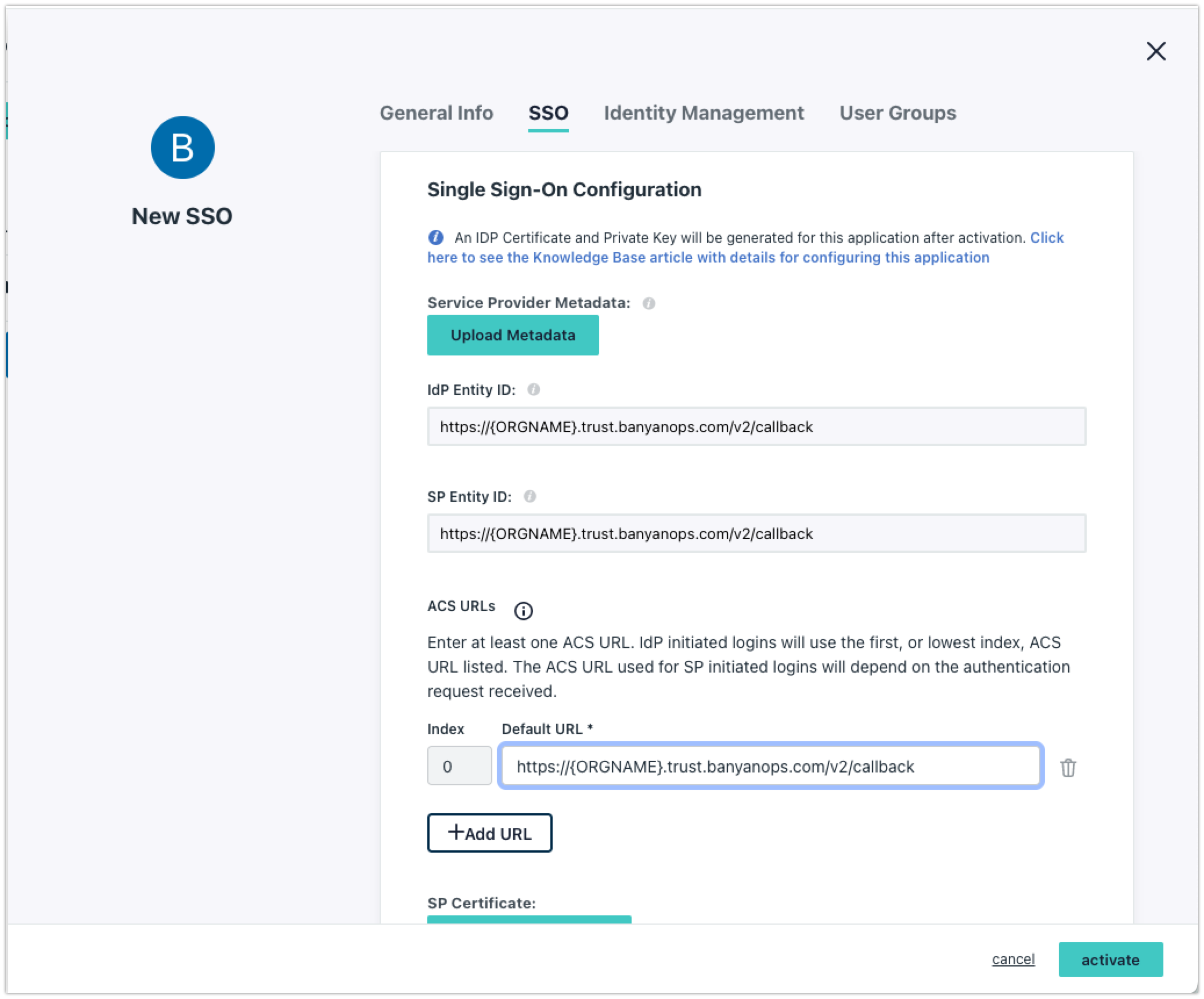 2) SP Entity ID: https://{ORGNAME}.trust.banyanops.com/v2/callback