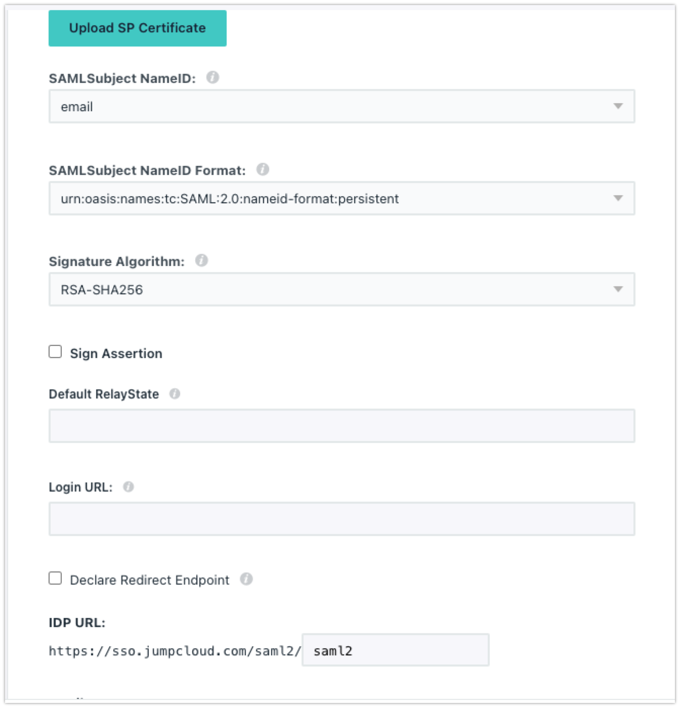 2.2 In the Identity Provider Protocol field, select “SAML”. In the Identity Provider Name field, select “OTHER” and then enter “JumpCloud”.
