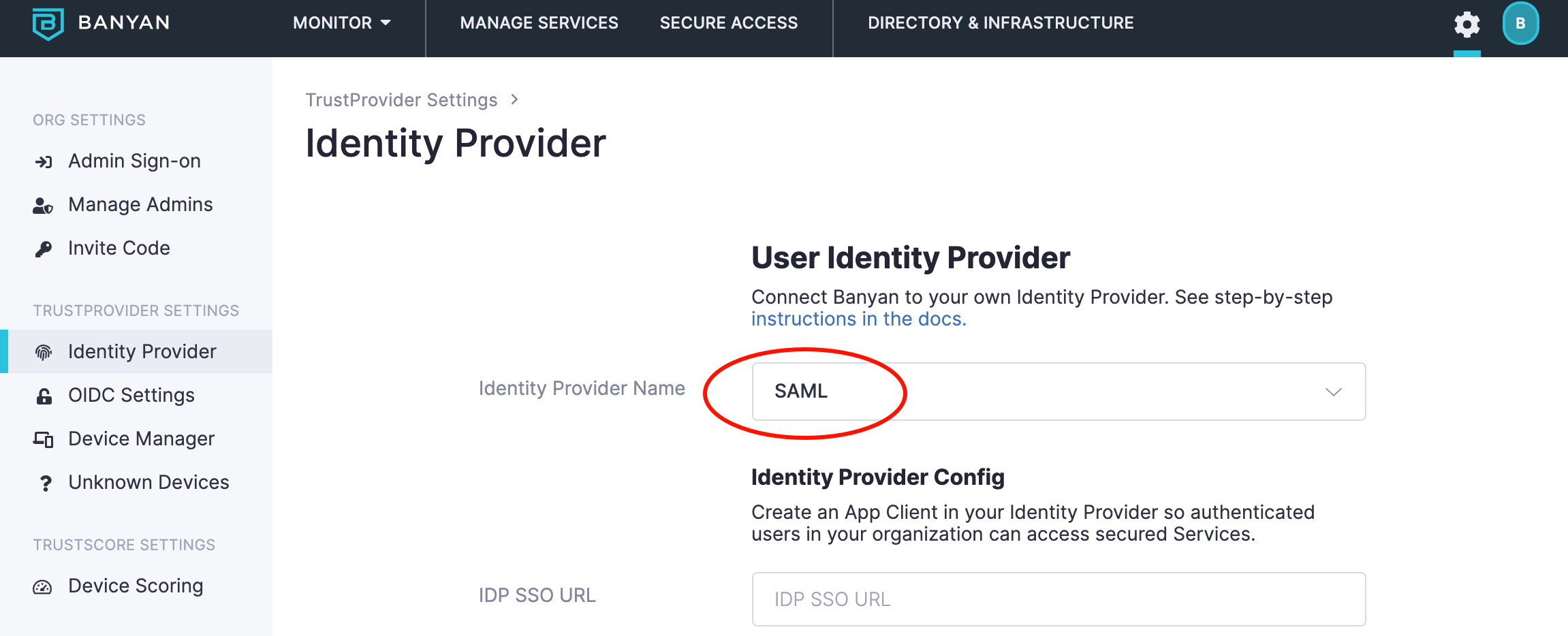 - 2. In your SAML Identity Provider, create a new App called “Banyan TrustProvider”