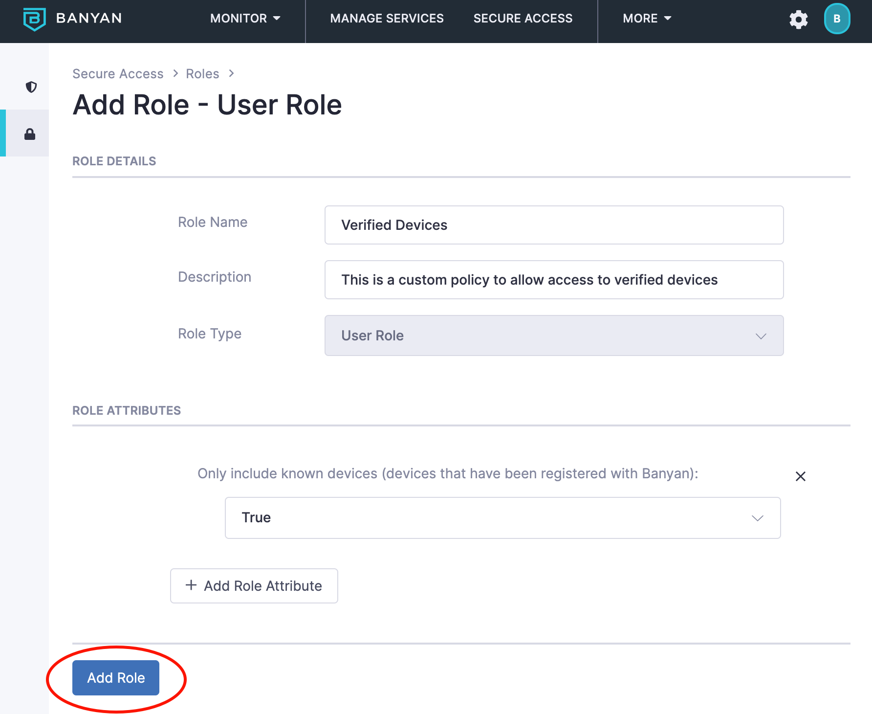 If you have configured Allow Unregistered Devices to Access Services for your organization, you can configure service-level settings to grant only Registered devices access to individual apps and services. You simply create a role that only applies to Registered devices. Then, you apply that role to specific apps and services so that only Registered devices are granted access.