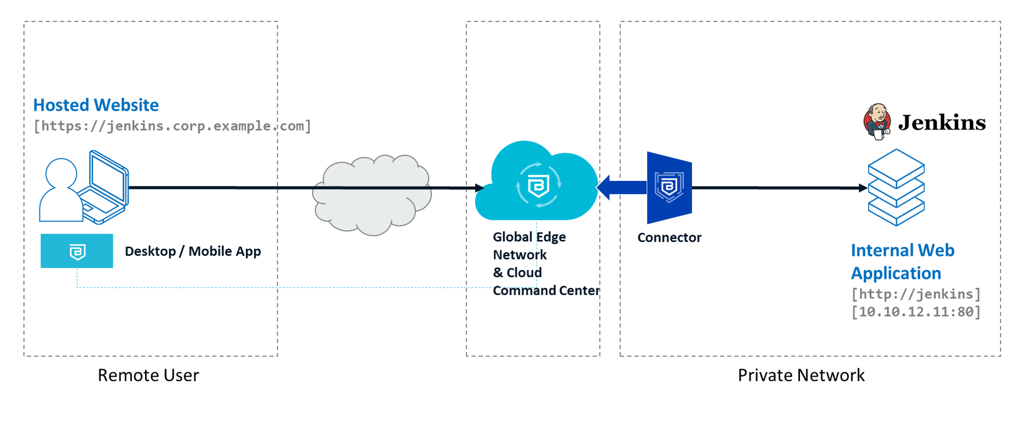The Connector is a dial-out connector that establishes a secure tunnel with CSE’s Global Edge Network. The Connector can be deployed in any location that has connectivity to your internal services.