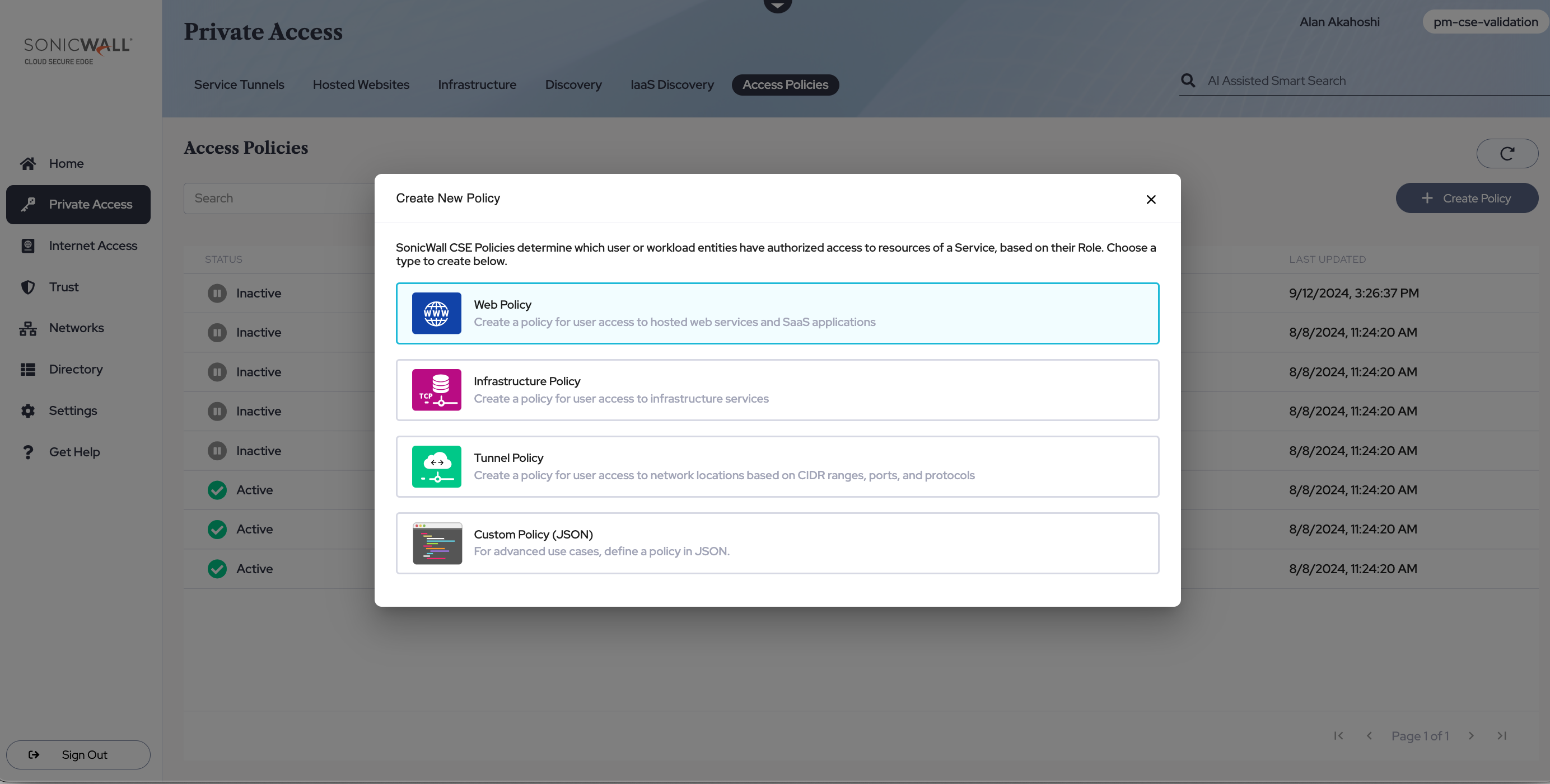1.1 Navigate from Private Access > Access Policies, and select + Create Policy.
