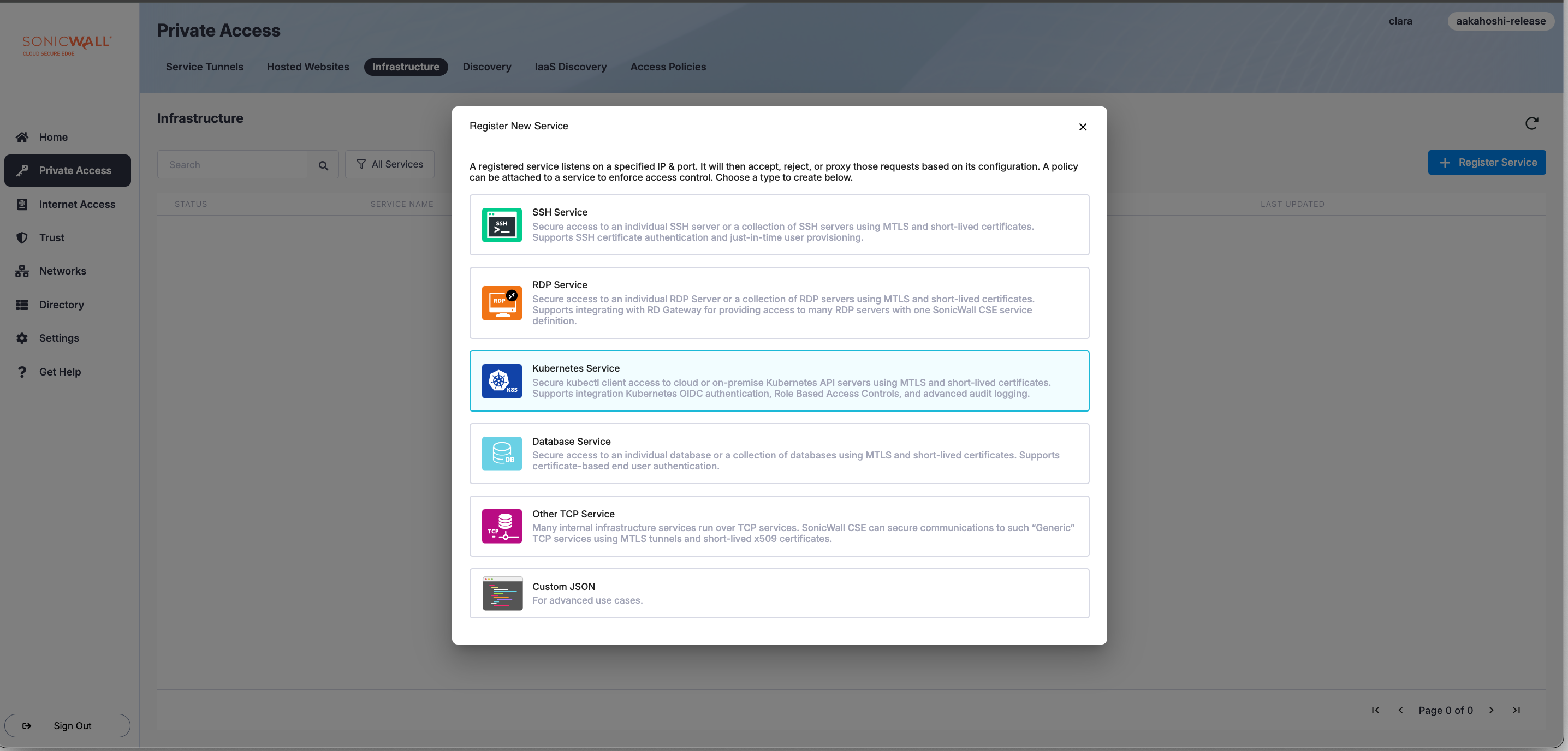 Configure a Hosted Service for zero-trust access to your Kubernetes Cluster: