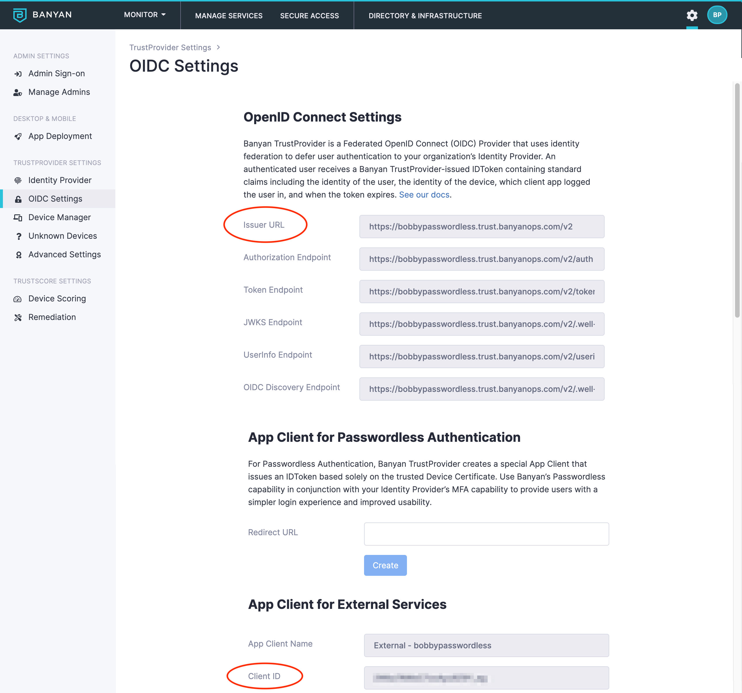 1.1 In the Command Center, navigate to Settings > TrustProvider Settings > OIDC Settings and note the OIDC values. These will be used in the upcoming steps.