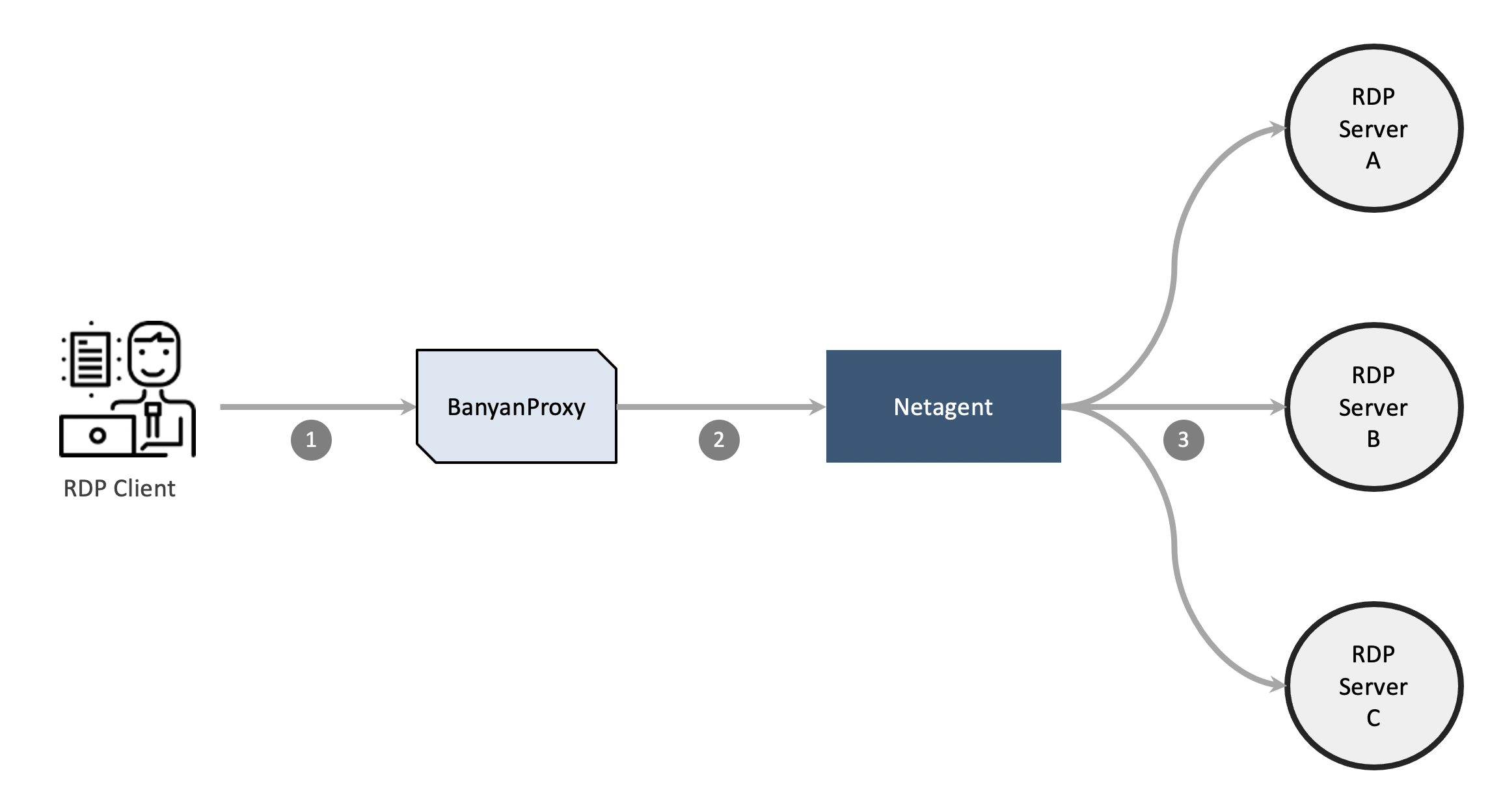 9. The RDP client will use banyanproxy to automatically tunnel the RDP session over a Mutual-Auth TLS channel using HTTP Connect Tunneling.