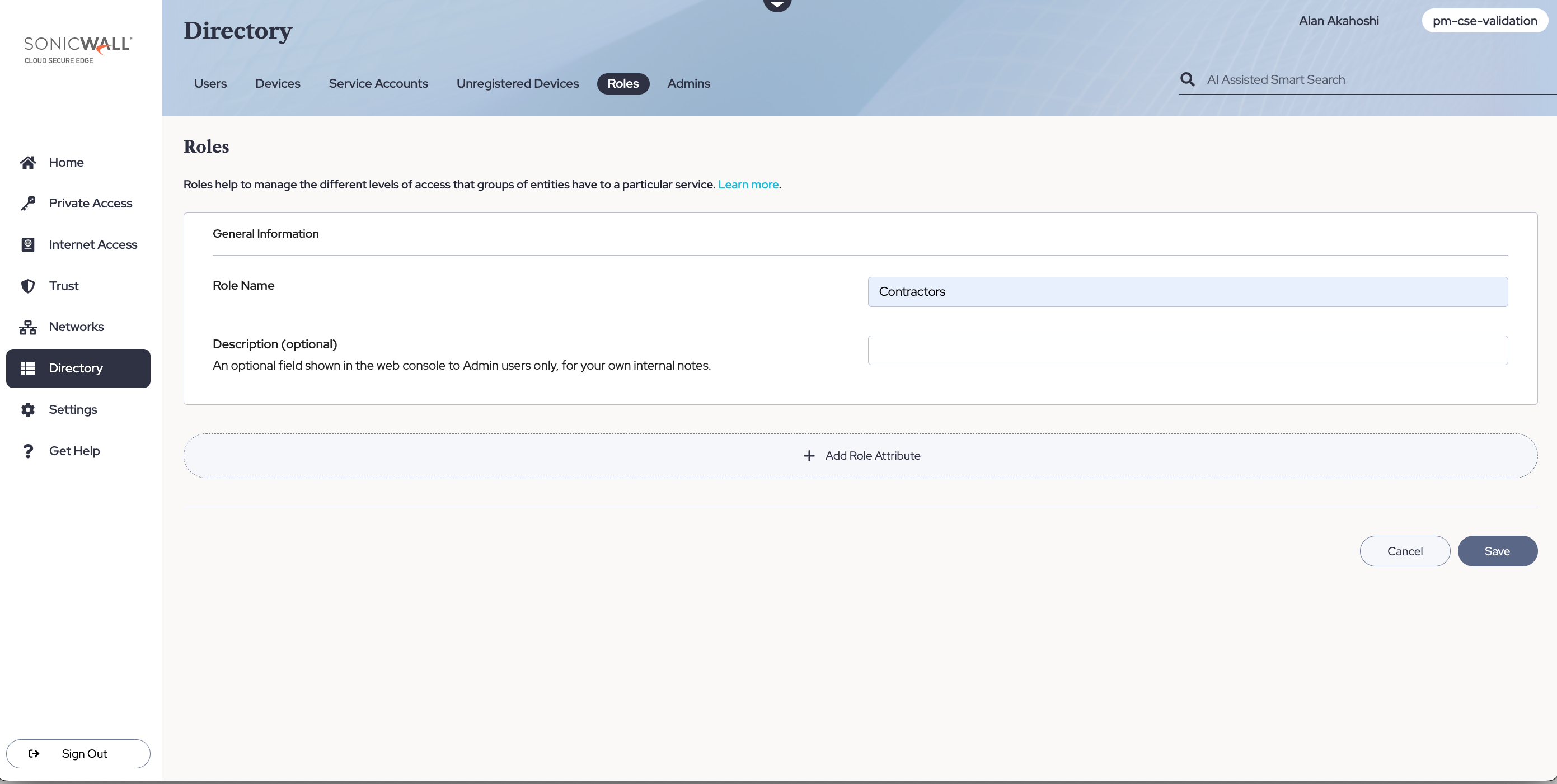 In the Command Center, navigate from Directory > Roles, and then select + Add Role. Create a User Role and then select + Add Role Attributes to apply it to specific sets of users (such as By Group contractors).