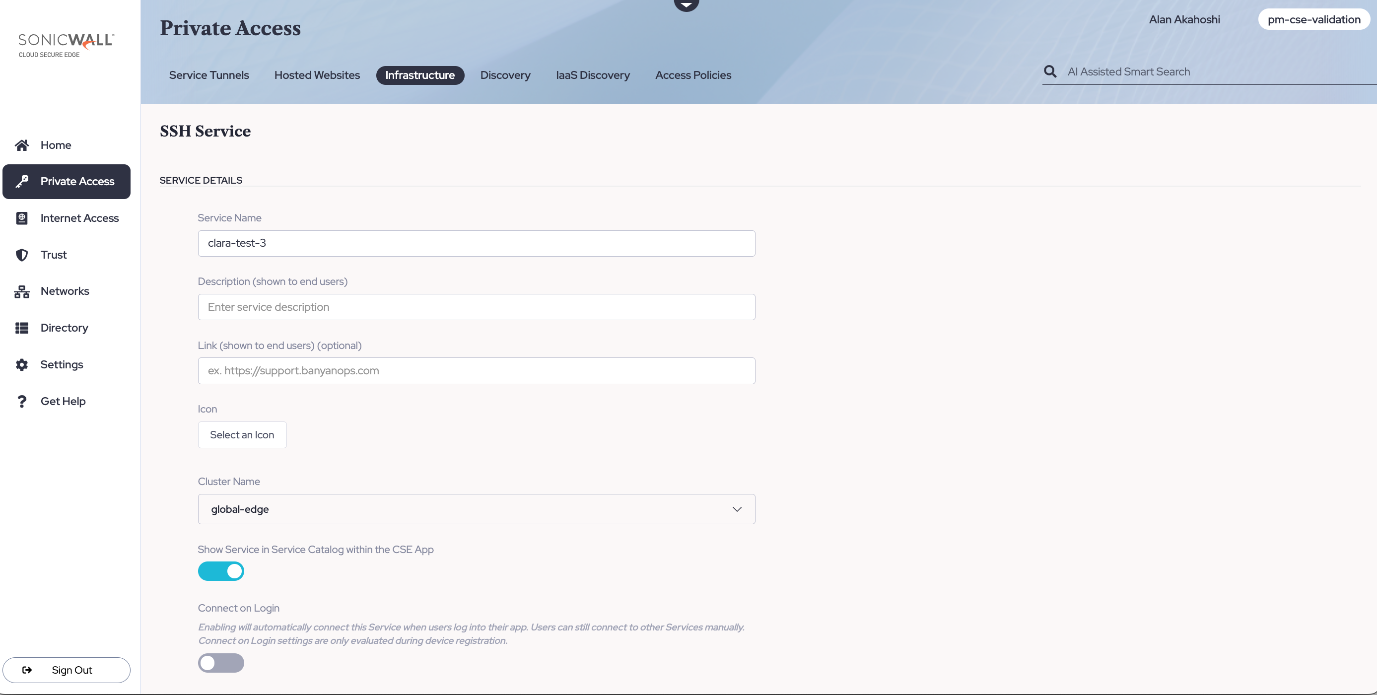 3.5 Under Service Attributes, select an Access Tier (self-hosted private edge deployment) or a Connector (global edge deployment).
