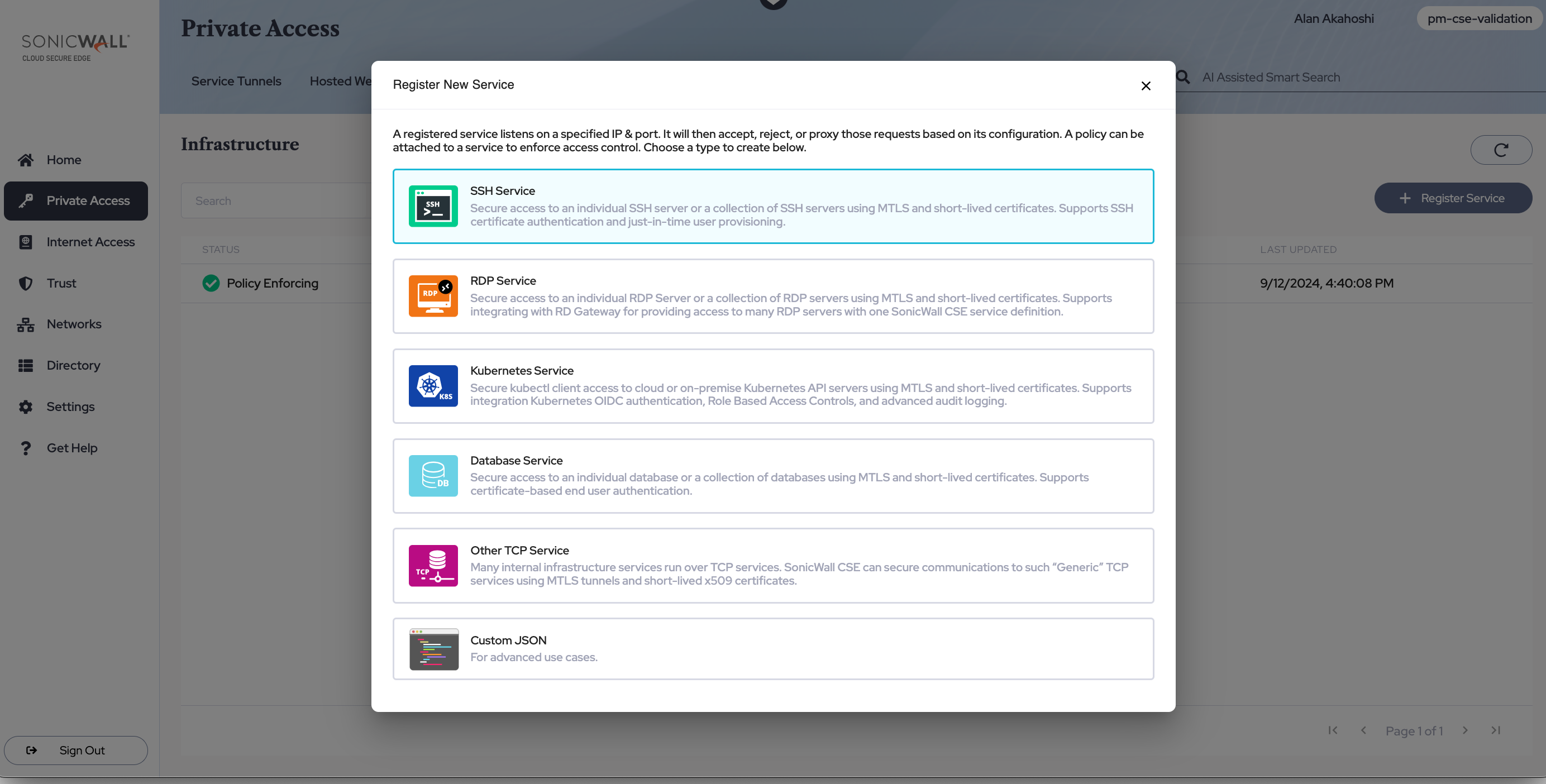 3.1 Navigate from Private Access > Infrastructure, and then select + Register Service. Select SSH Service.