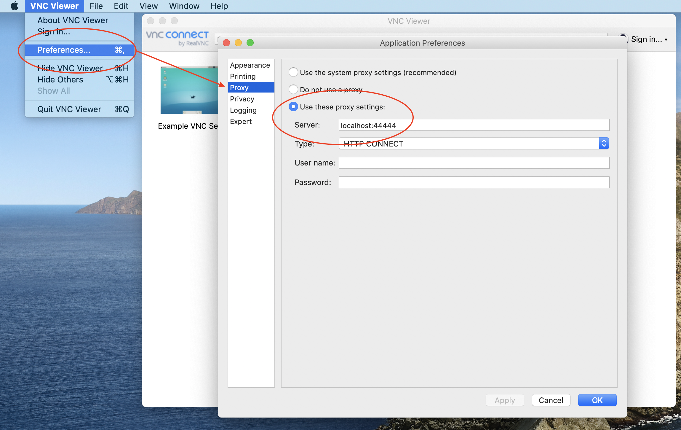 Once the client is configured for the HTTP Connect Proxy, the end-user can enter the address of their TCP service as normal and they will be able to securely connect to it.