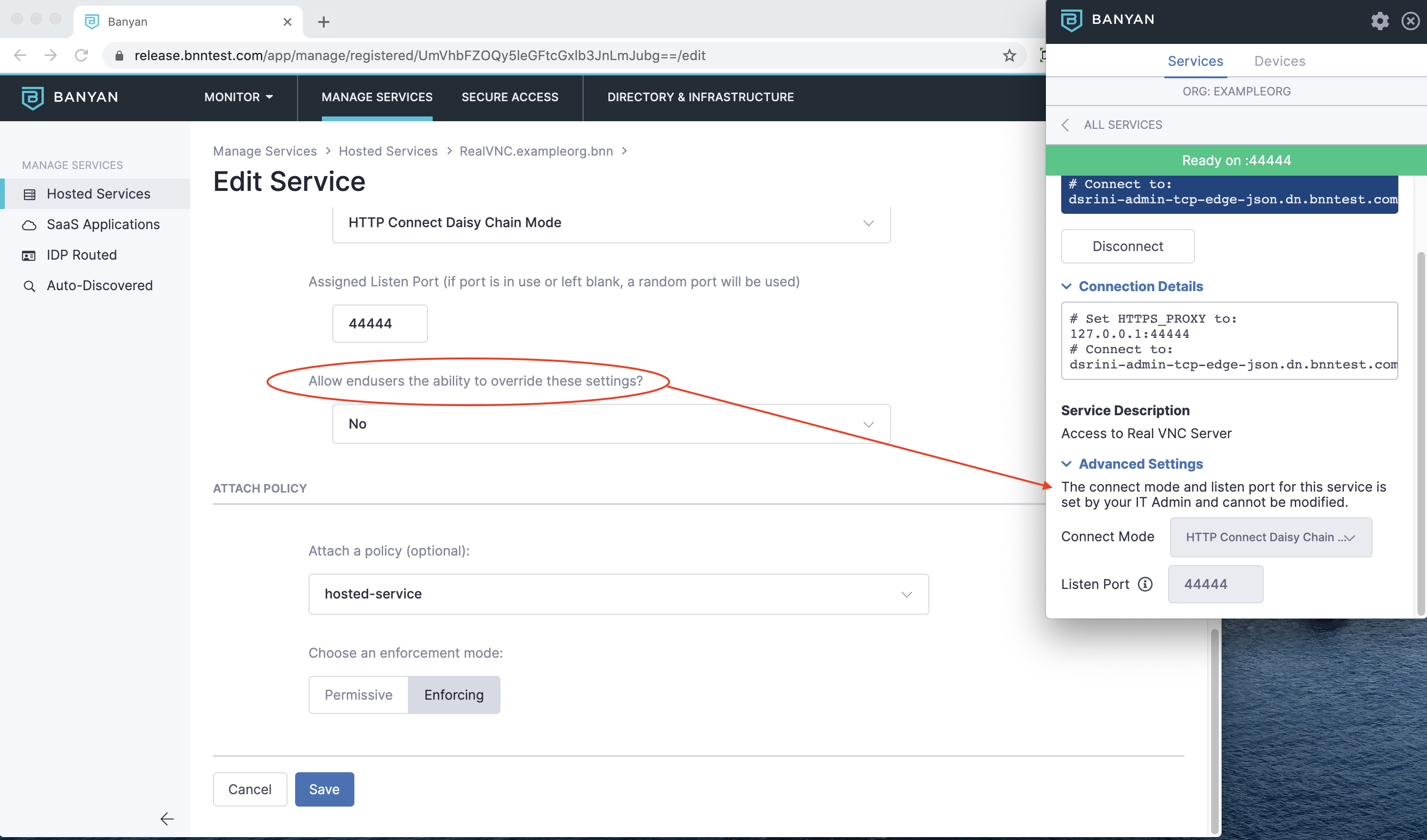 Optionally, you can configure the TCP Service so that the desktop app allows or denies your end users from overriding your configuration.