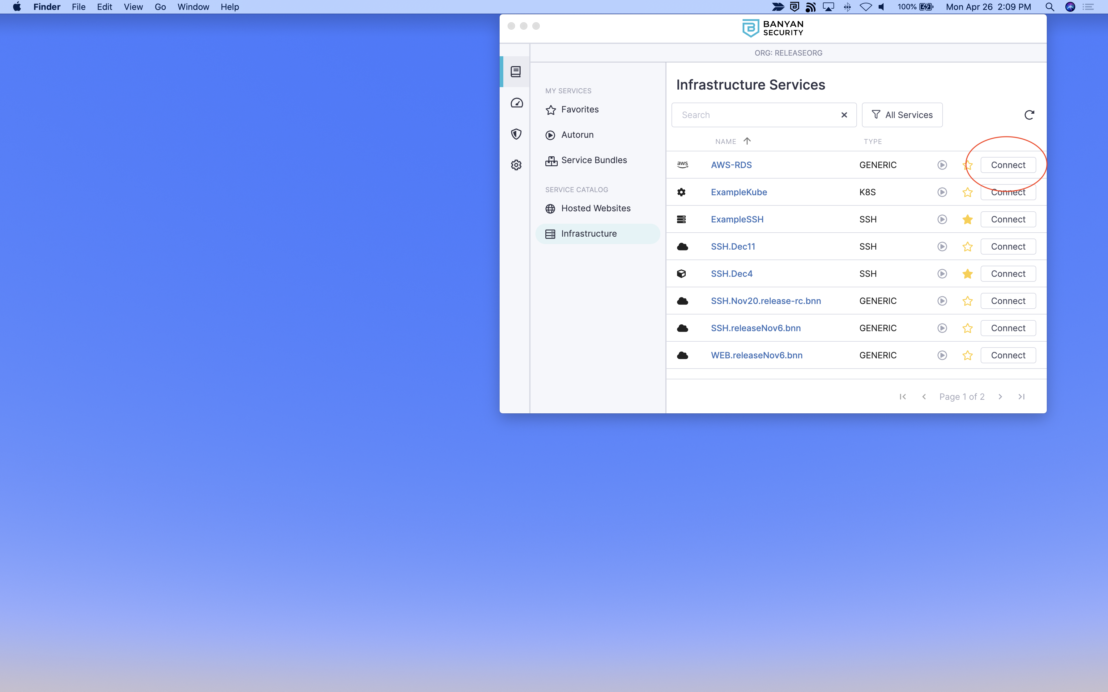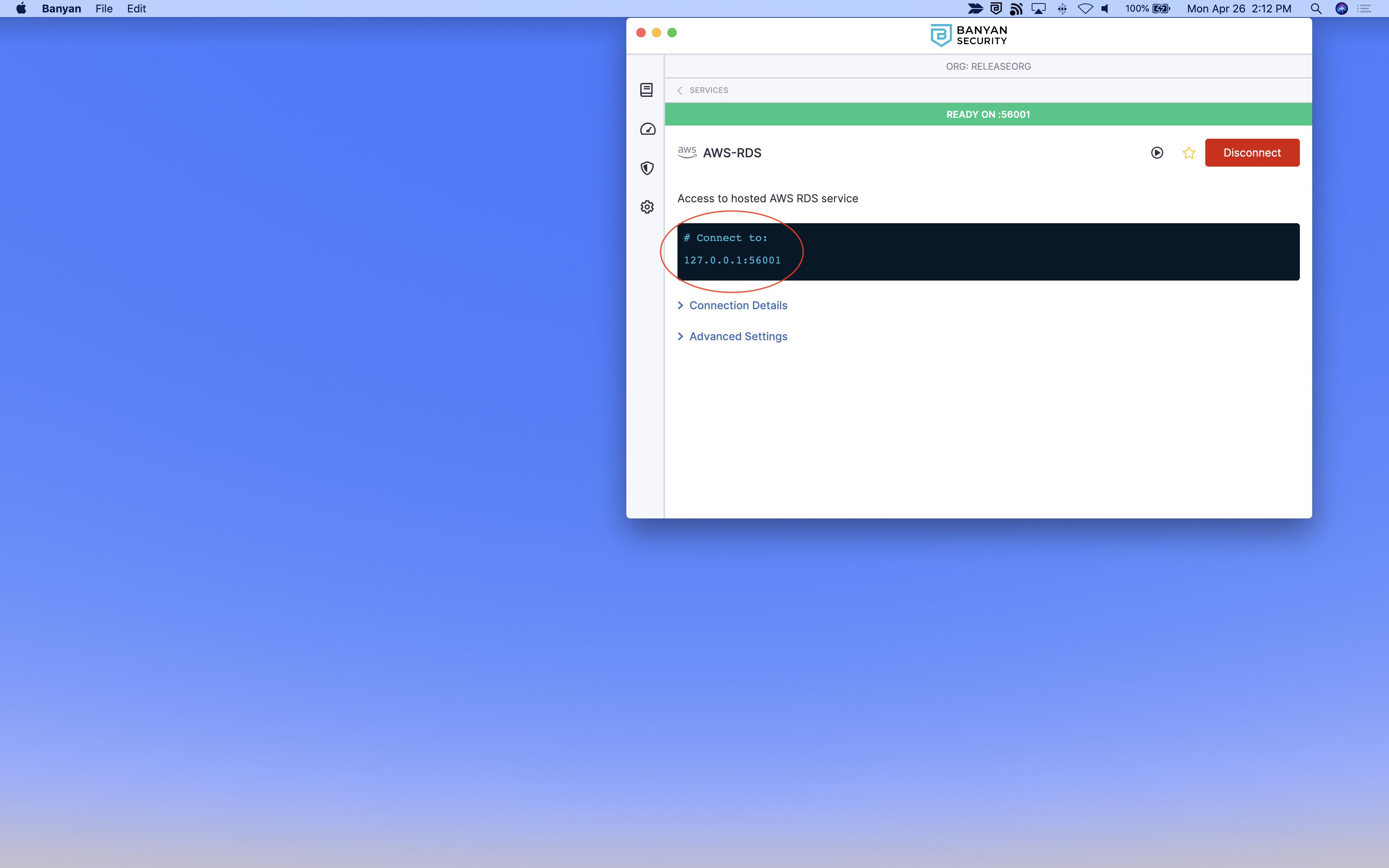 3.1 Launch the desktop app, locate the hosted database (for example, Amazon RDS) server from the list of TCP Services, and then select Connect.