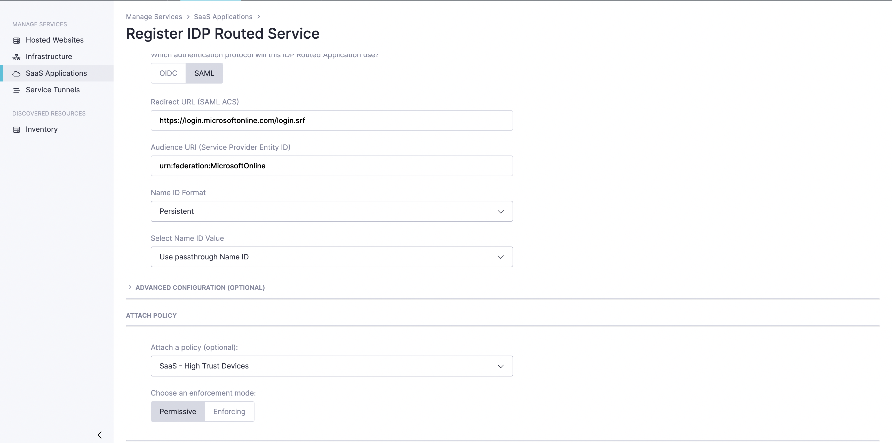 Note: Specific user and device assignment for SaaS applications is typically done at the IDP.