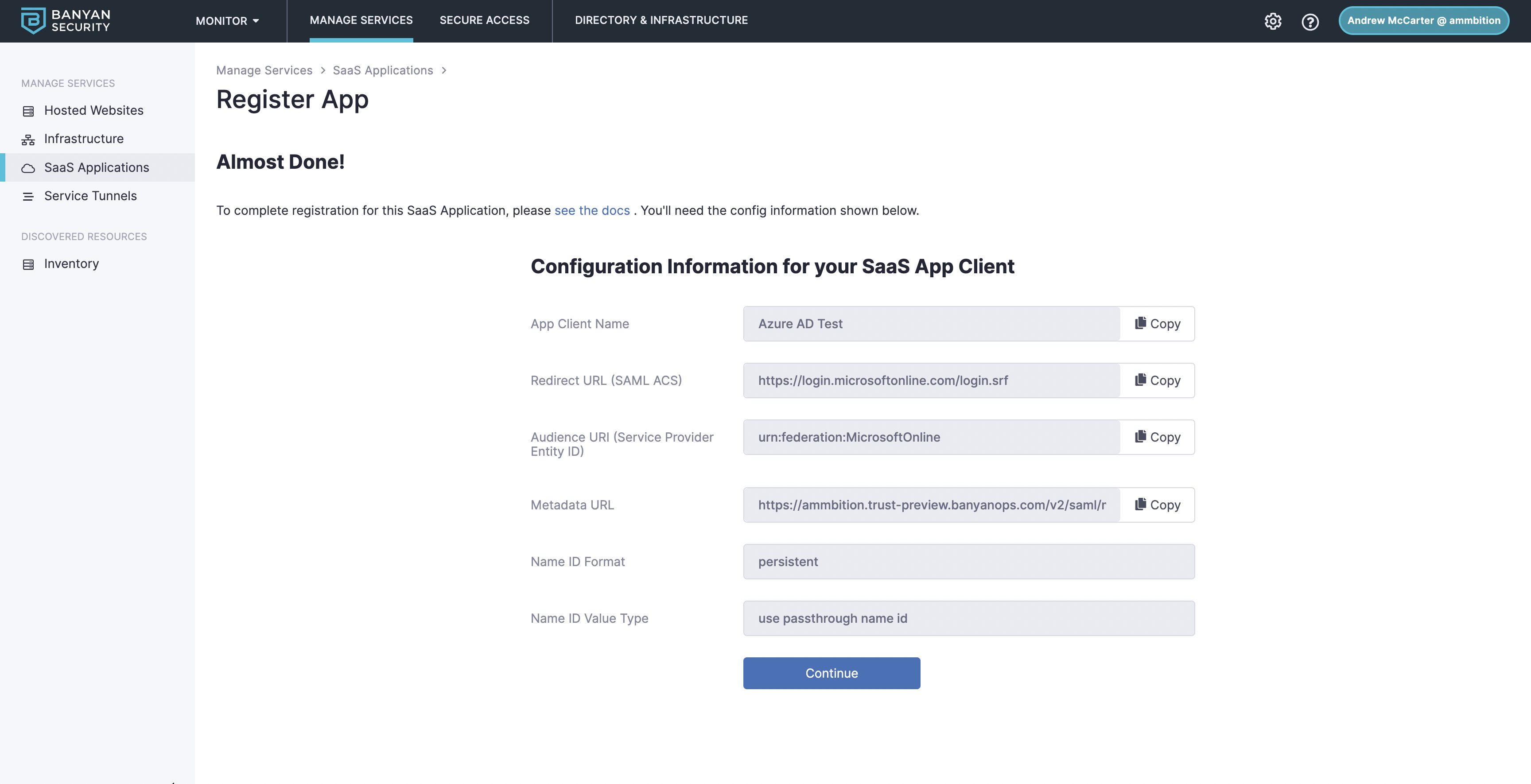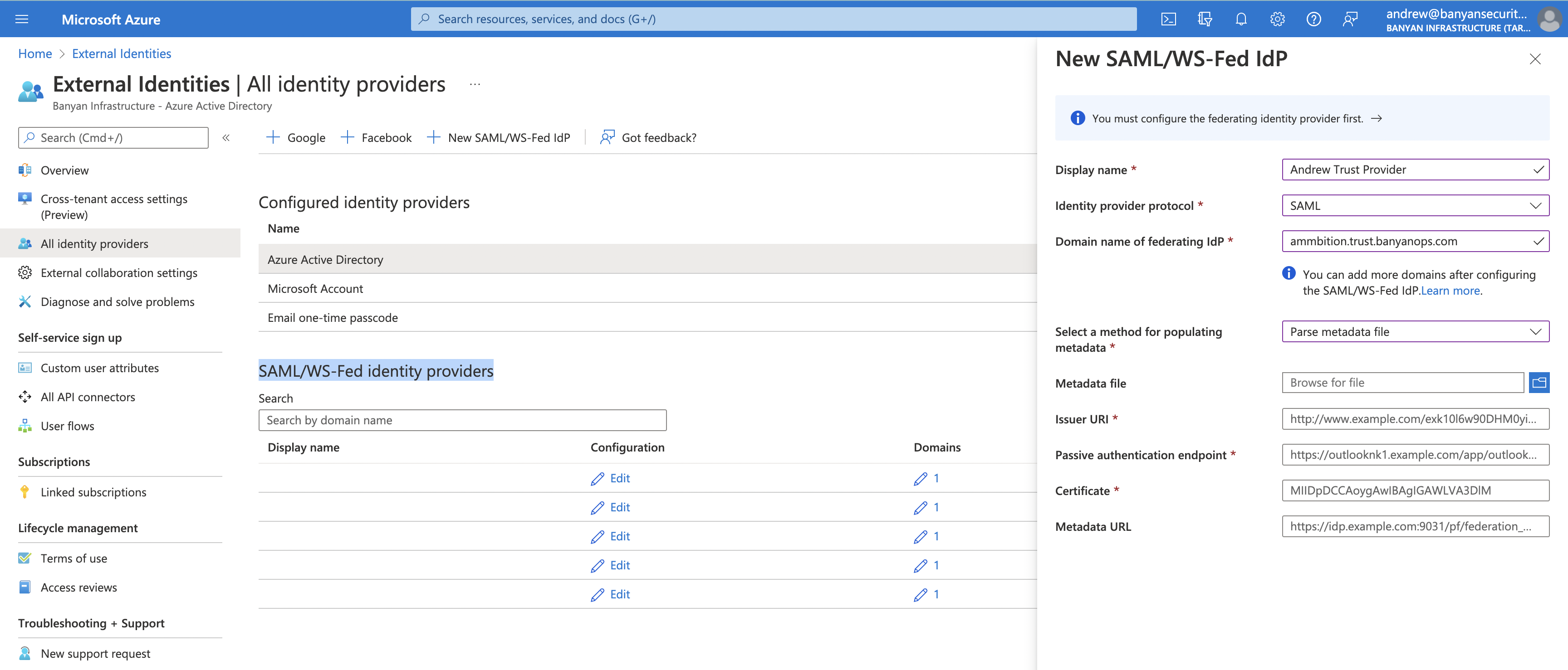 - Domains in Azure AD must be federated entirely with Banyan. Domains cannot be segmented.