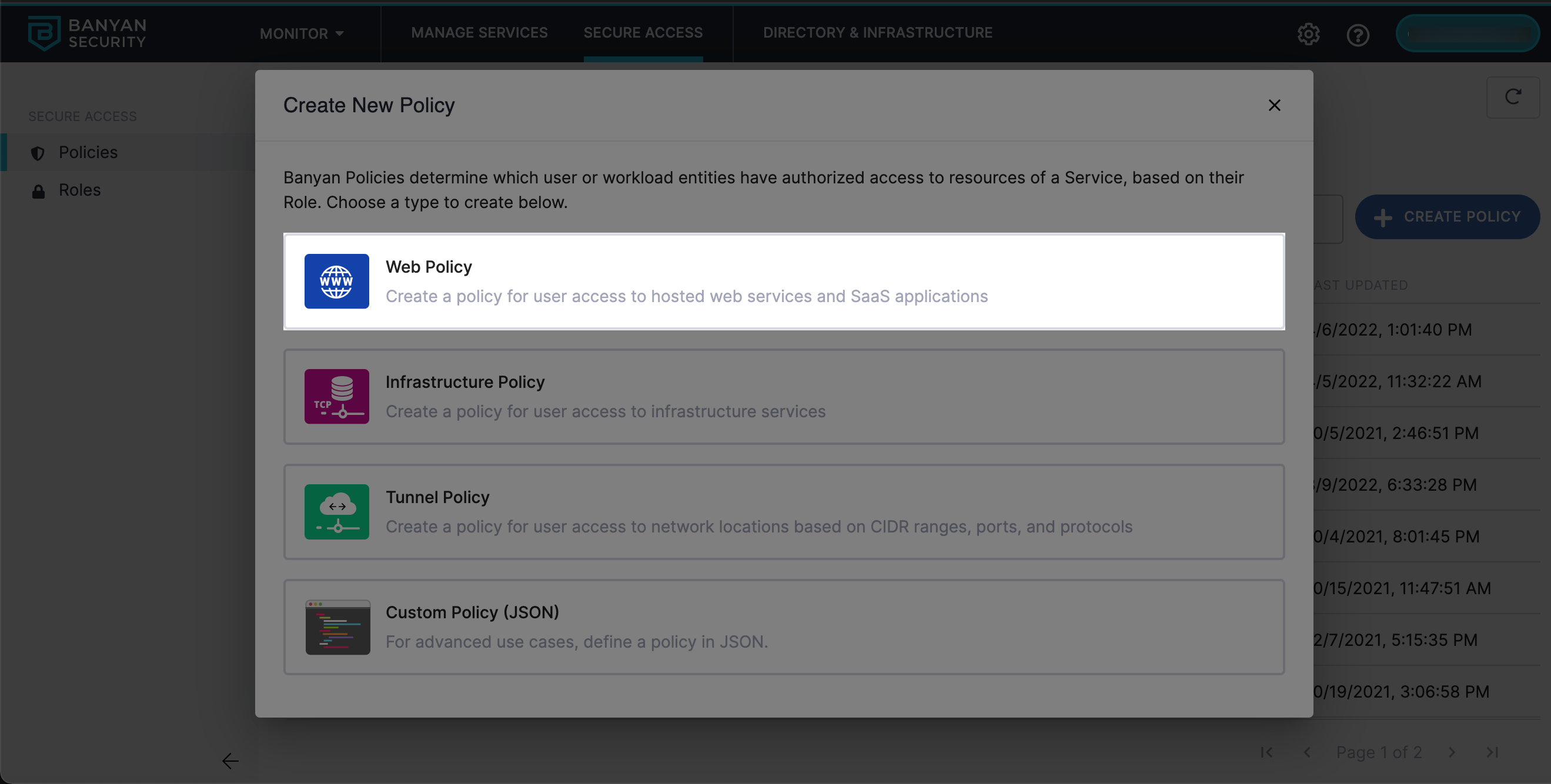 1.1 Navigate from Private Access > Access Policies > + Create Policy, and then select Web Policy.