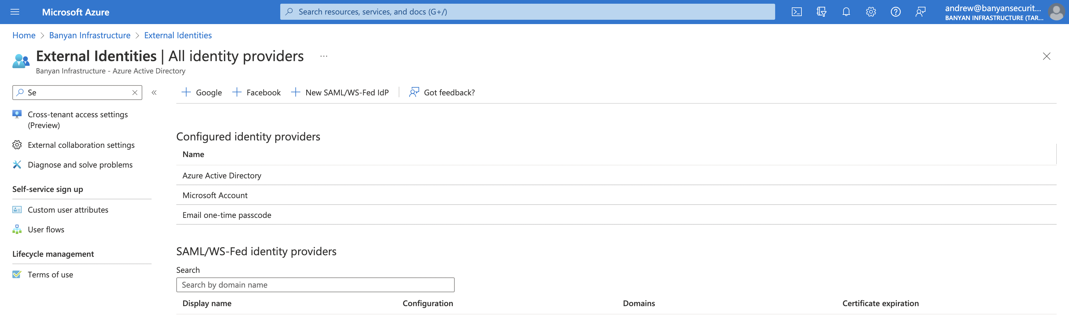 Note: The following steps are provided under the assumption that no previous Identity Provider has been set up in your AAD environment. Some steps could change if previous Identity Providers have been configured. It is best to consult Microsoft documentation for the most up to date best practices.