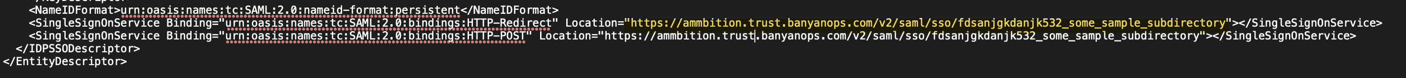 Note: If the metadata does not download, copy the XML on the webpage into a new file, saving it with the name BanyanMetadata.xml