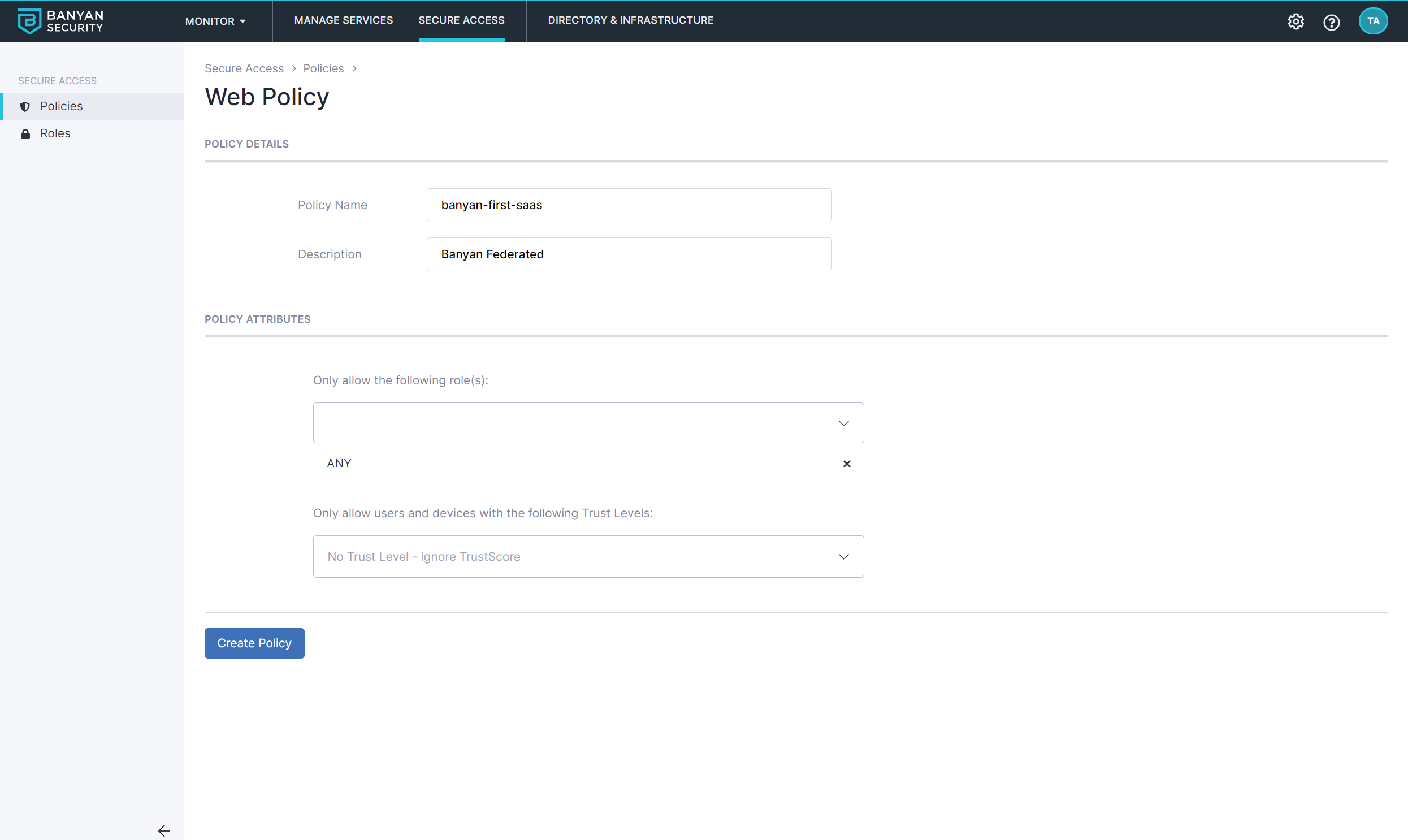 Step 1. Create a Policy for SaaS App Access