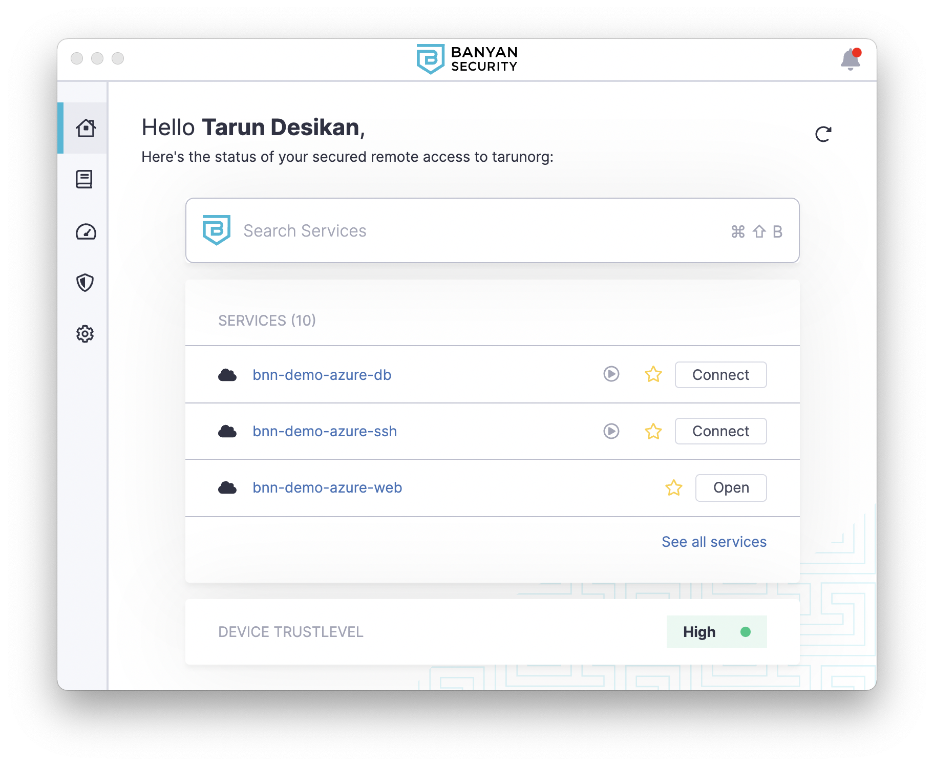 To access your Azure resources from your device, open the Banyan app and select a service to connect to it.
