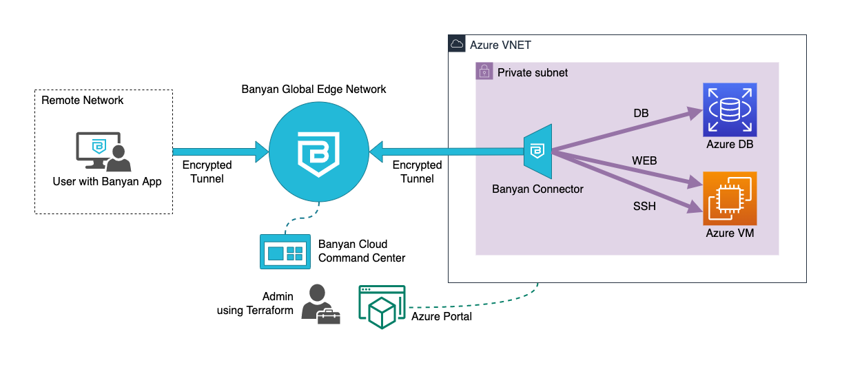 - the Banyan Connector, which can sit in your private network, sets up an outbound connection to the Banyan Global Edge Network