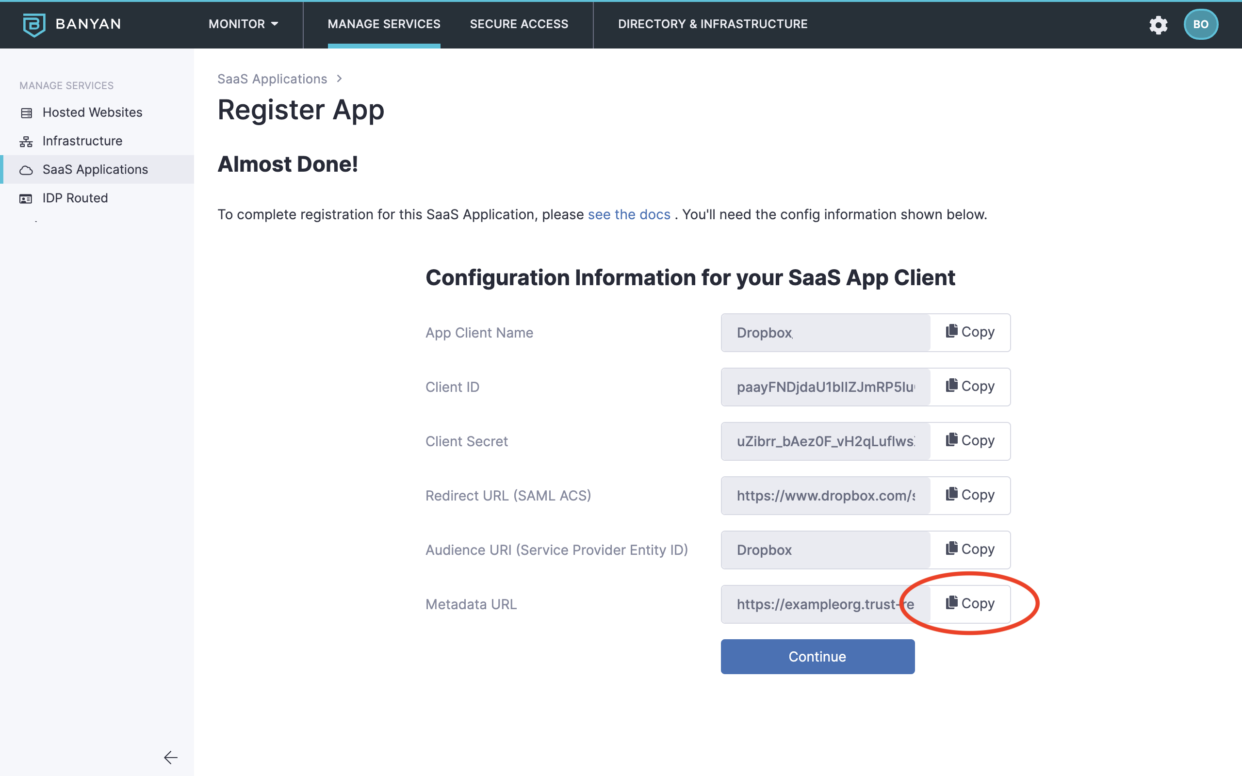 Step 4. Configure your Dropbox to use Banyan for authentication