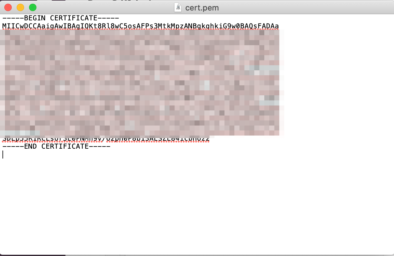 -----END CERTIFICATE-----) to the last line. - Ensure you add line breaks so that each line is no longer than 64 characters max.