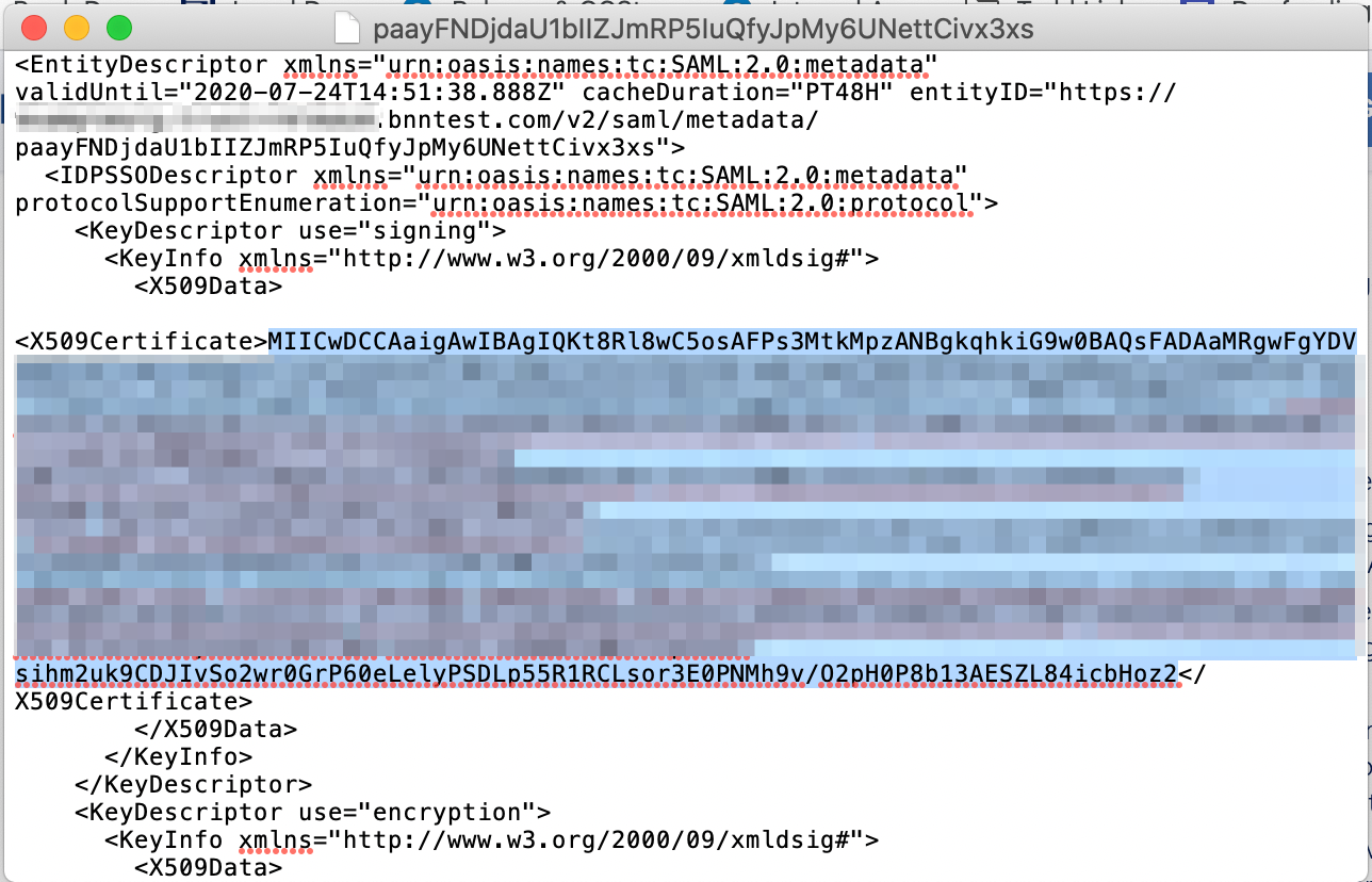 3.2 Locate and copy the X509Certificate string, and then paste it in a separate, new text editor file.