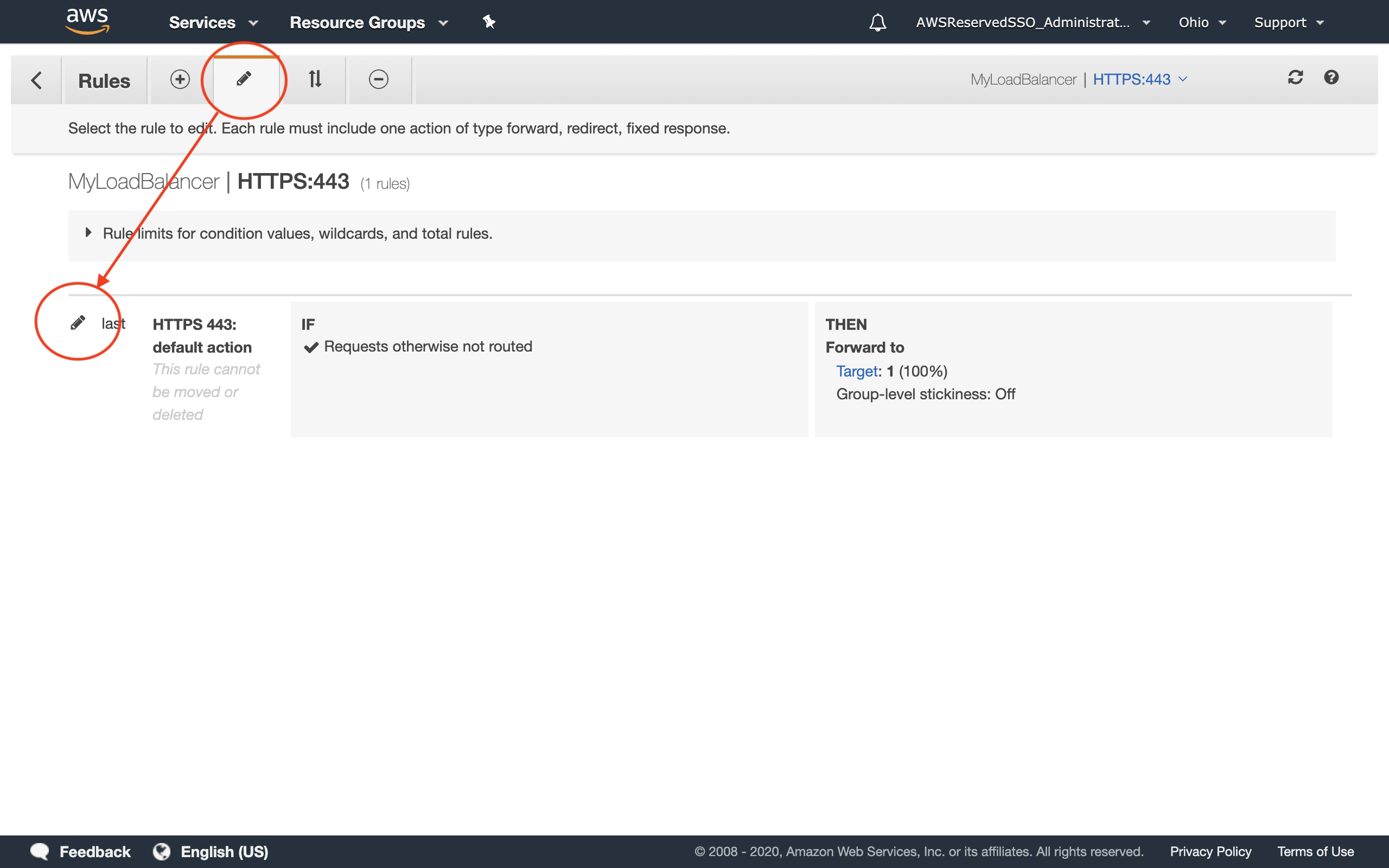 3.2 Locate the HTTPS listener, and then click View/edit rules.
