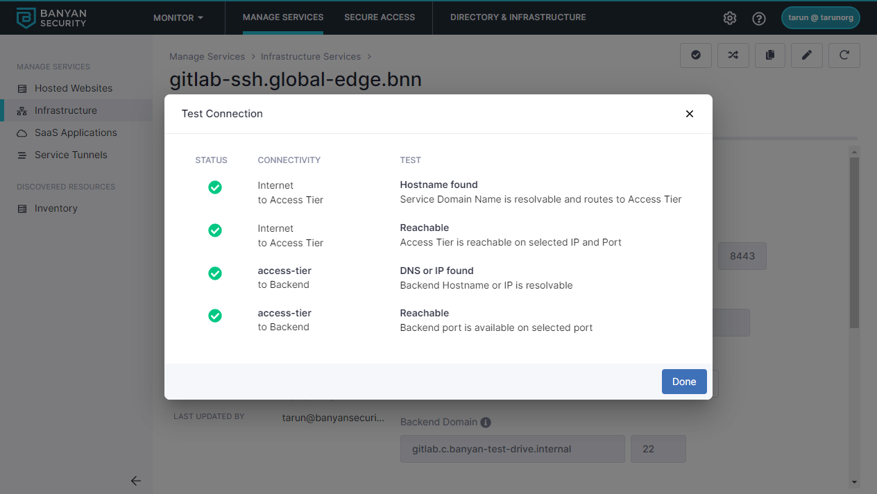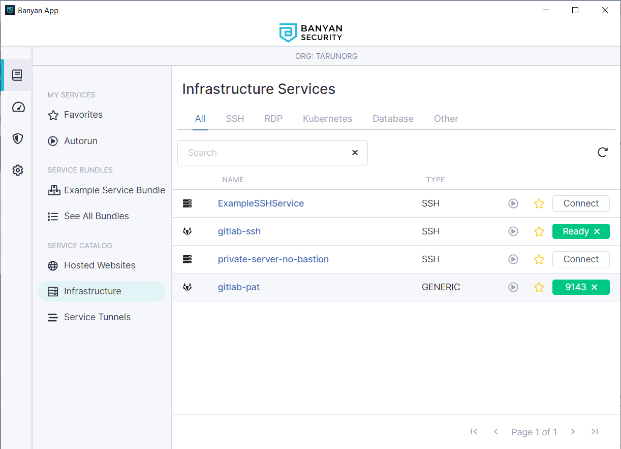 4.3 Open up the Banyan App and click connect on the gitlab-pat service