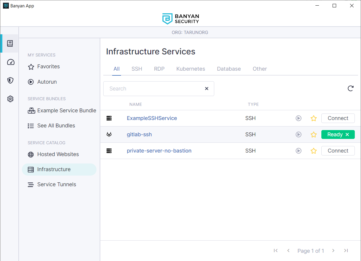 2.3 Open up the Banyan App and click connect on the gitlab-ssh service