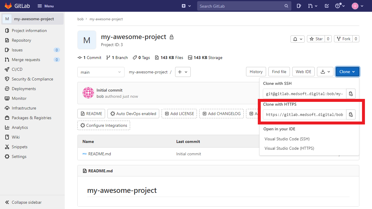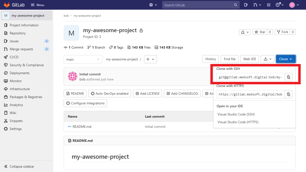 git clone git@gitlab.medsoft.digital:bob/my-awesome-project.git