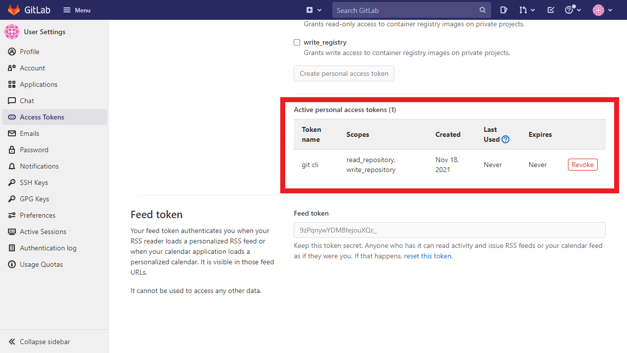 4.1 In GitLab, ensure your user account is configured for PAT authentication or Password authentication